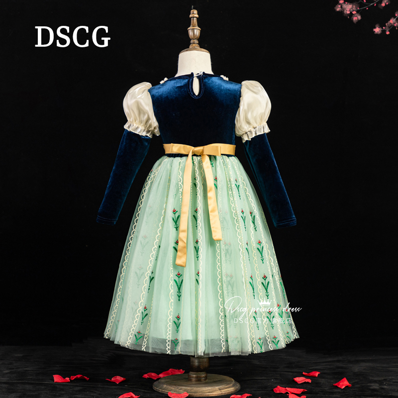 安娜公主裙女童春秋新款正版迪士尼万圣节儿童Anna生日礼服连衣裙
