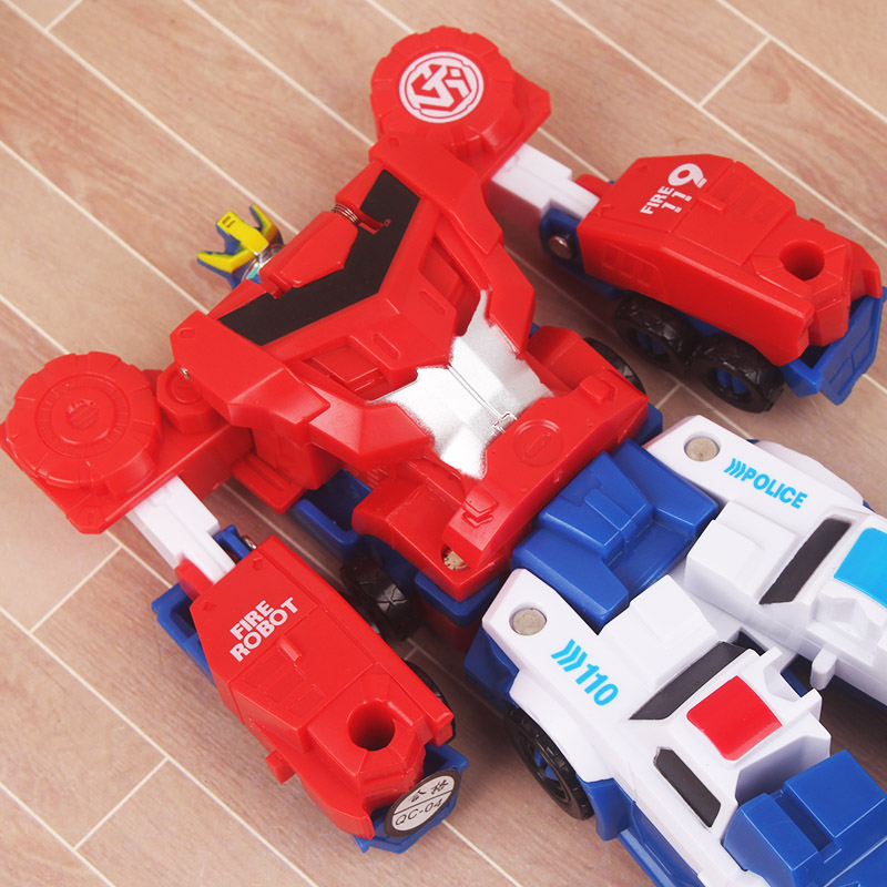 磁吸合体变形机器人警车消防车宝宝儿童益智玩具男女生日礼物
