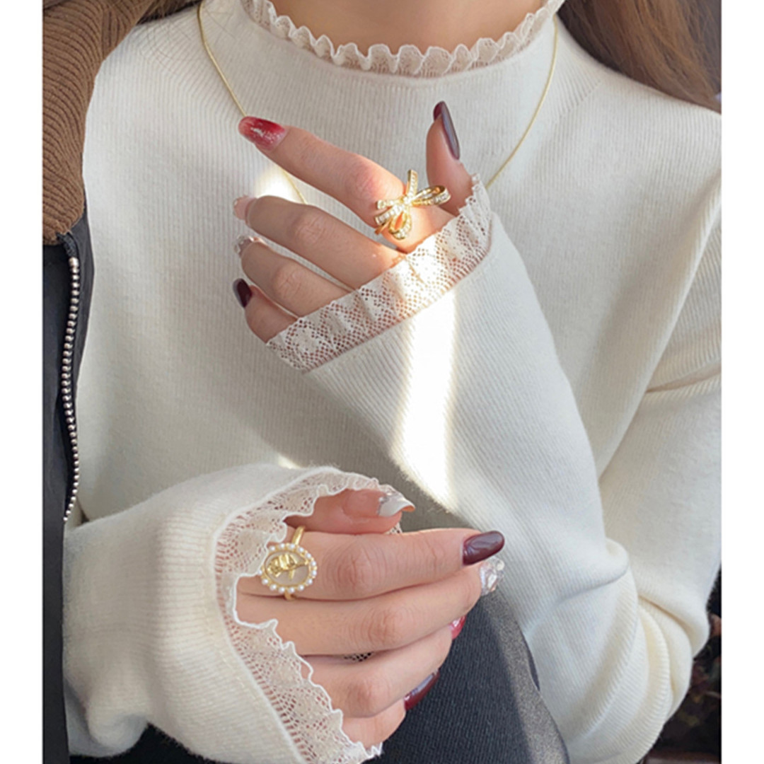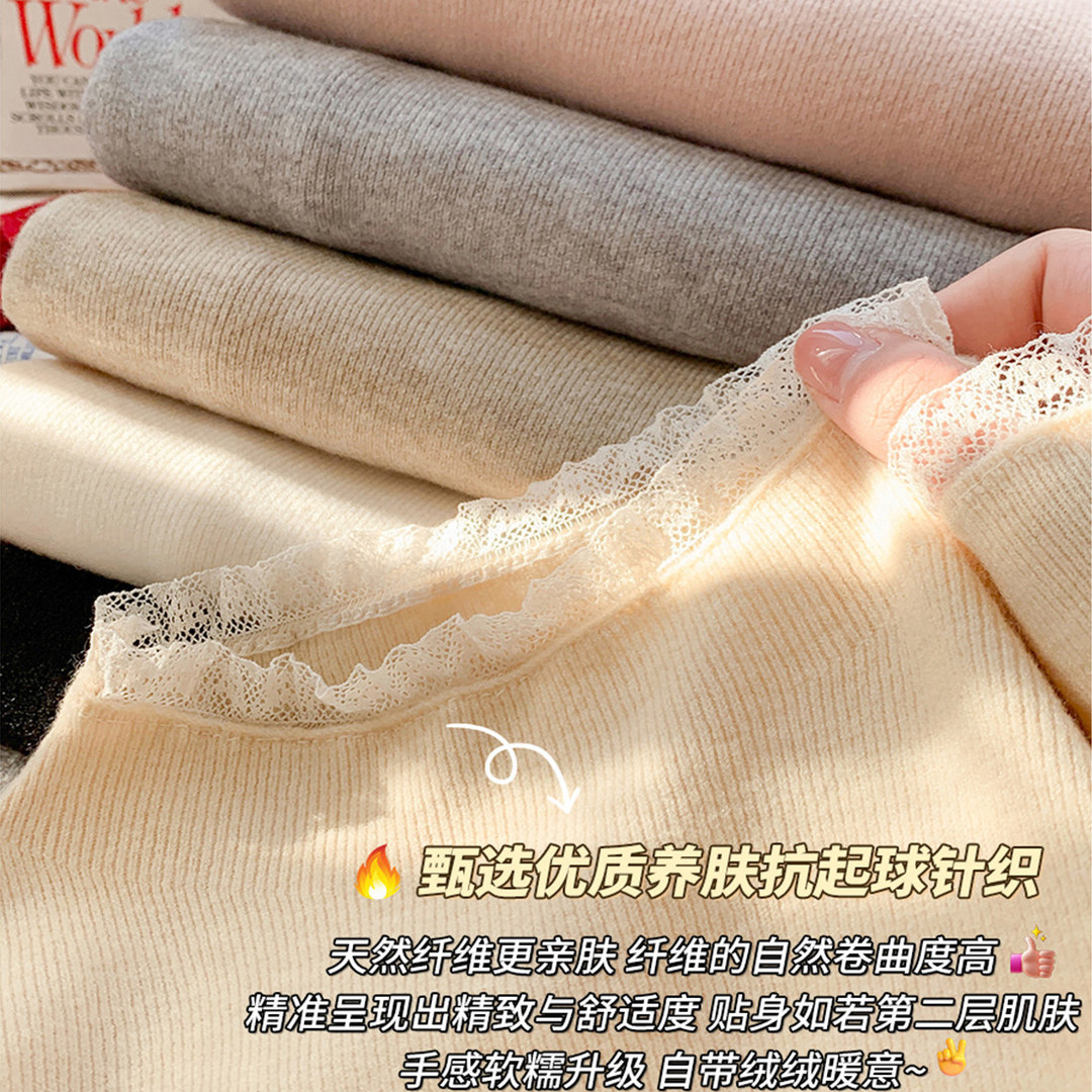 蕾丝边加厚打底衫女秋冬内搭2025新款毛衣百搭半高气质修身领上衣