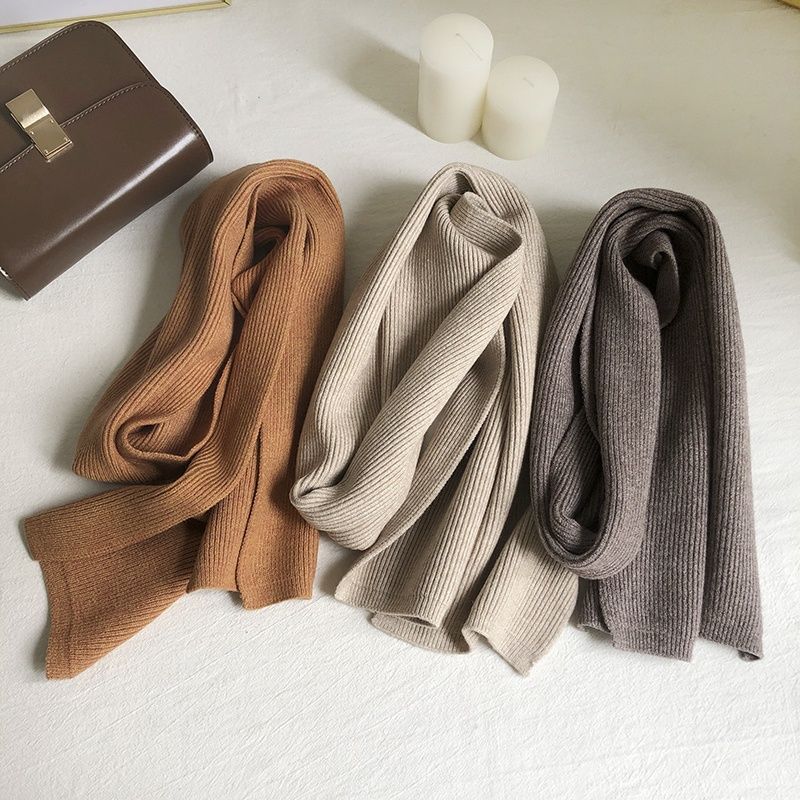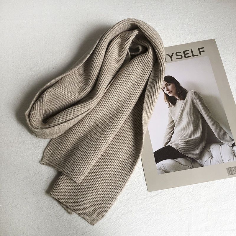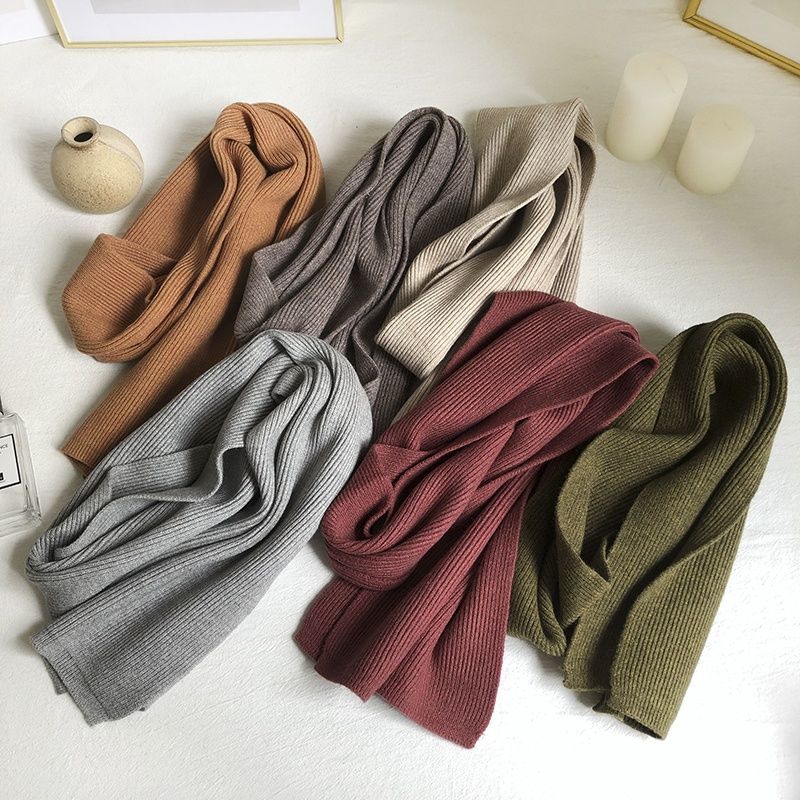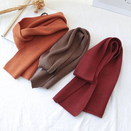 ins亲肤暖冬小围巾女春秋冬季加厚纯色毛线针织chic日系围脖韩版