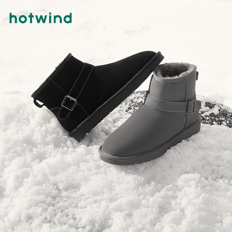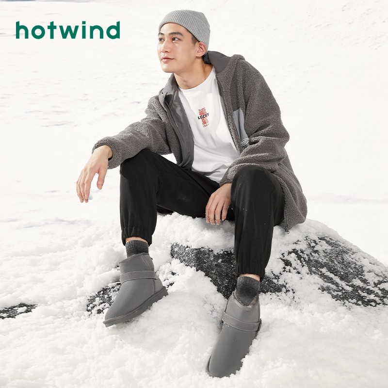 热风男鞋23年冬男士加绒雪地靴户外保暖时尚厚底短靴经典