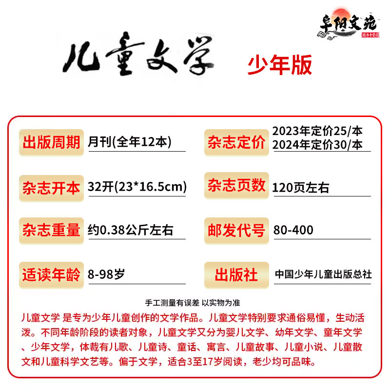 2025年订阅【可选】儿童文学少年版杂志2025年10月现货/2024年全年 经典+选萃+小书房 初中小学生中高年级非2022/2021过期刊