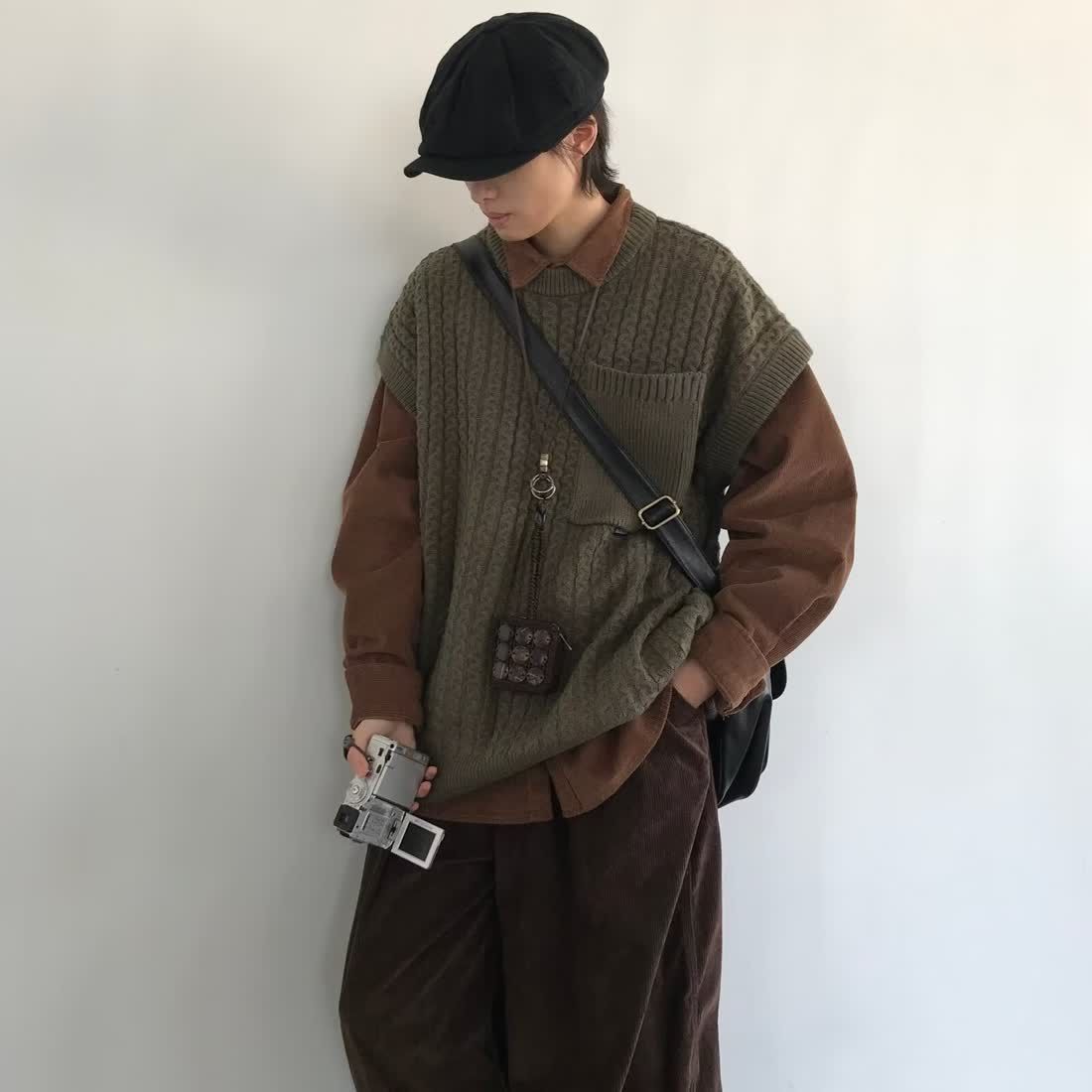 cityboy秋冬日系复古马甲背心毛衣男女生休闲宽松潮牌针织衫外套
