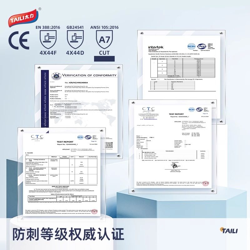 太力3级防针刺F级防割手套户外防护赶海园艺修剪耐磨劳保防滑透气