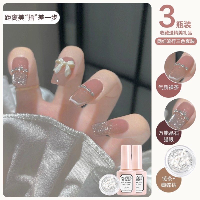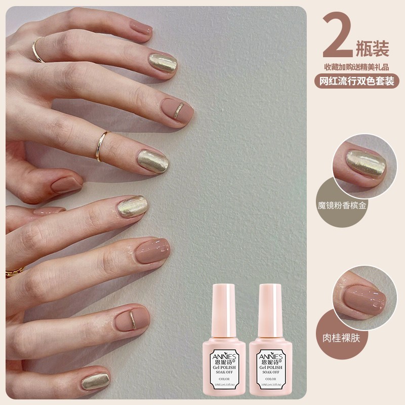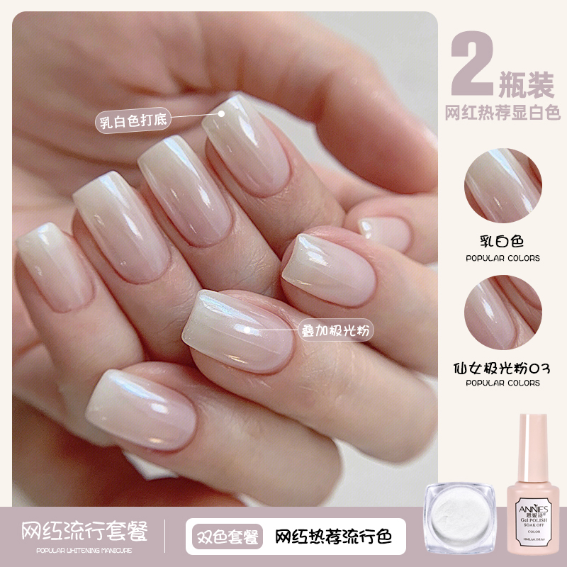 脚指甲油胶2025年新款网红流行极光魔镜粉乳白双色套装美甲店专用