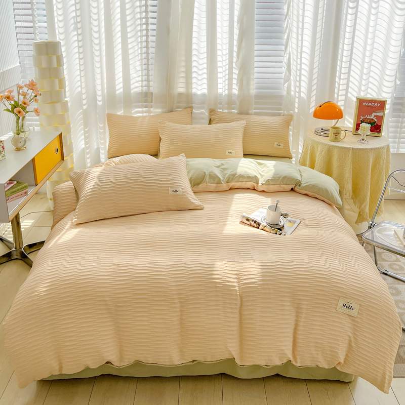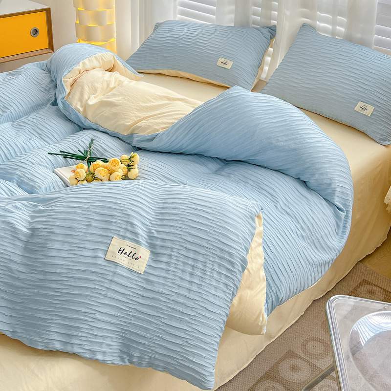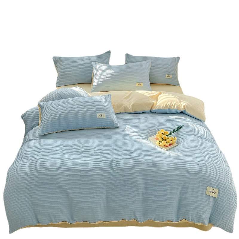 泡泡纱水洗棉床上四件套纯色全棉少女心床单被套学生宿舍三件套