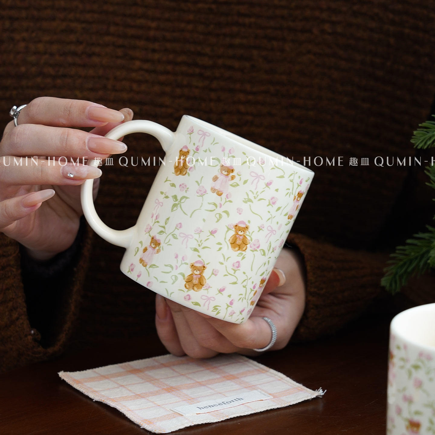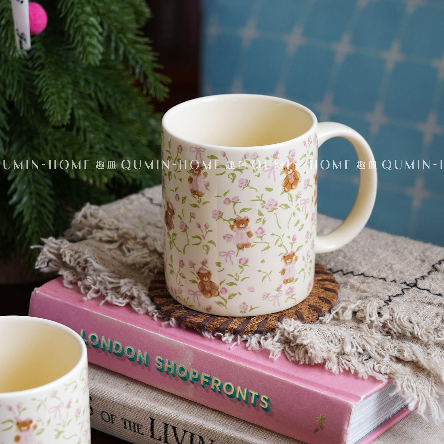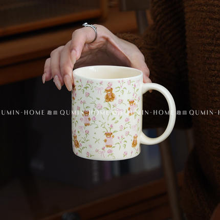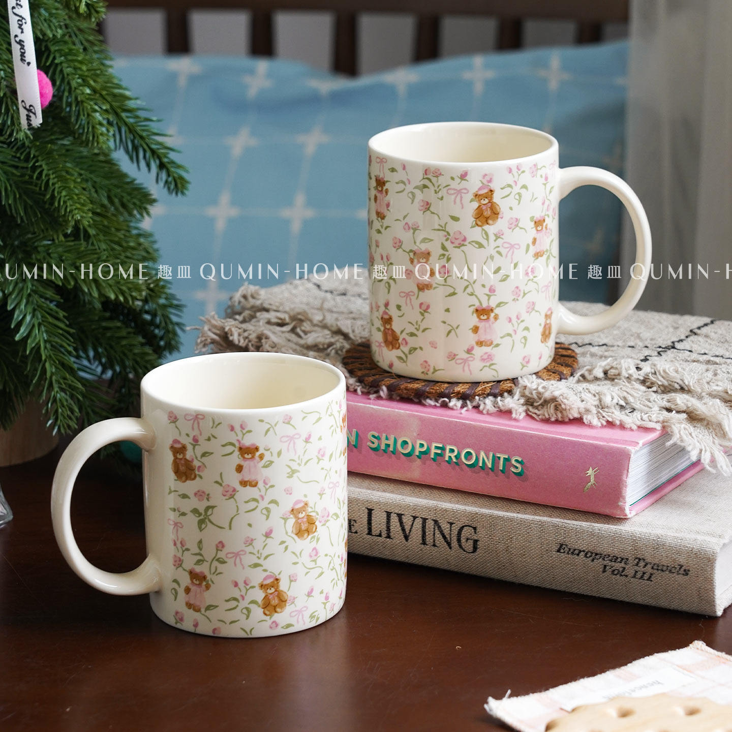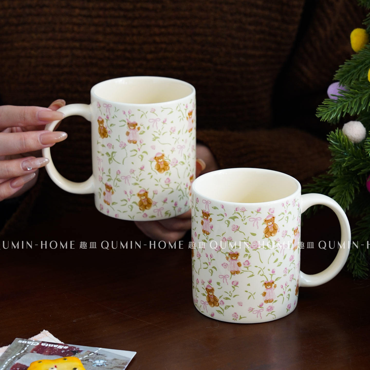 趣皿创意可爱小熊直身马克杯卡通陶瓷杯家用下午茶咖啡杯喝水杯子