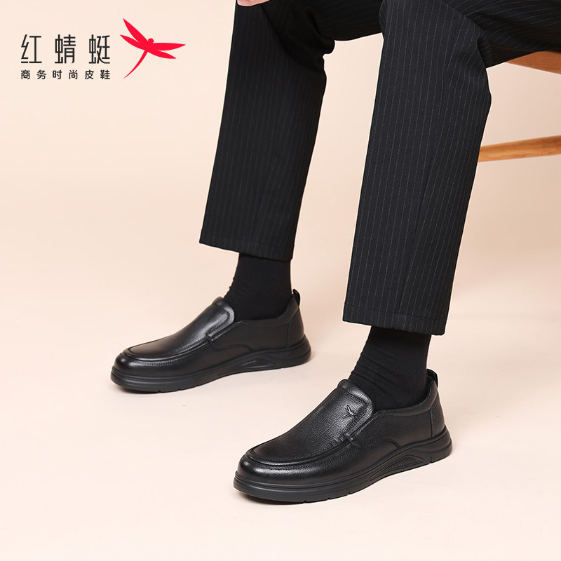 红蜻蜓男鞋2025春季新款鞋子休闲一脚蹬软底软皮皮鞋男真皮爸爸鞋