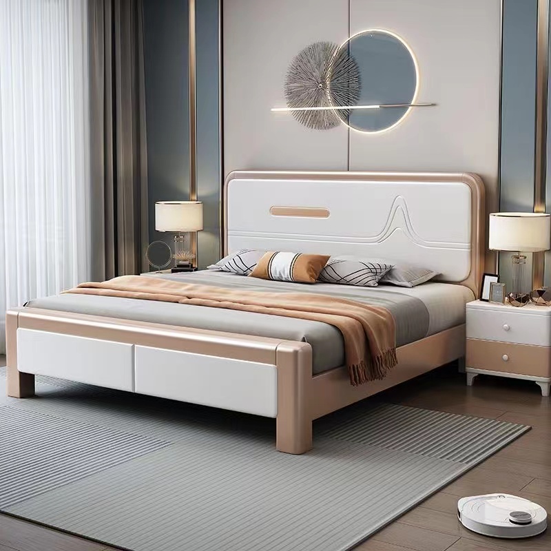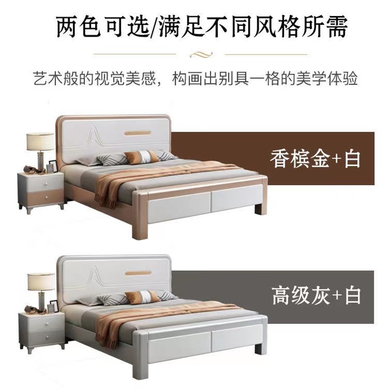 现代简约实木床1.8米主卧双人床全实木1.5米白色单人床储物婚床