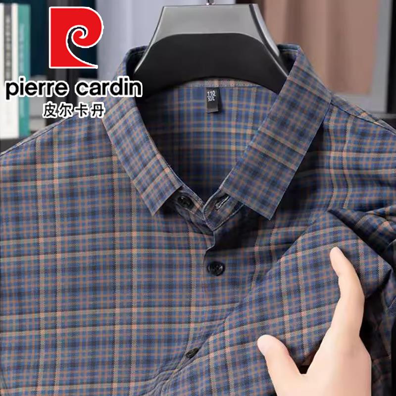 皮尔卡丹格子短袖衬衫男士夏季新款商务休闲凉感免烫薄款衬衣男装