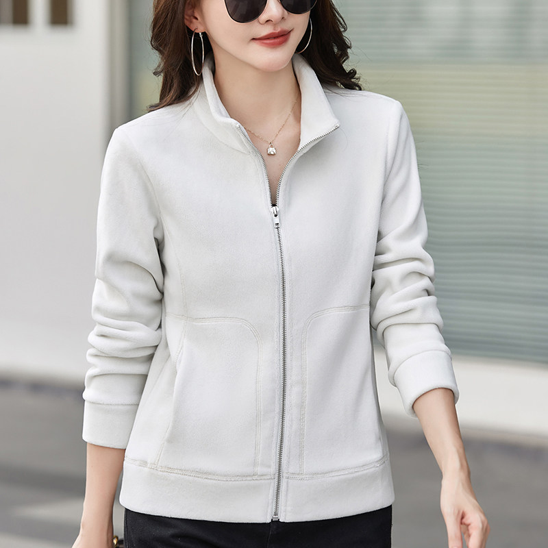 立领摇粒绒外套女装奥粒绒外穿新款加绒加厚开衫卫衣运动保暖上衣