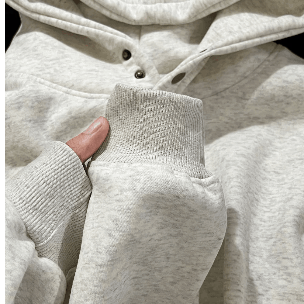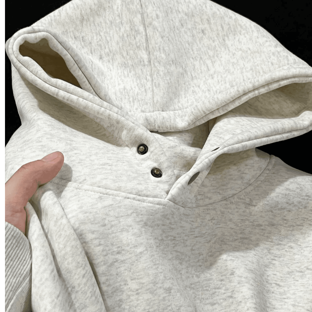 2025新款美式重磅420克双纽扣连帽卫衣白花灰纯色宽松男女款上衣
