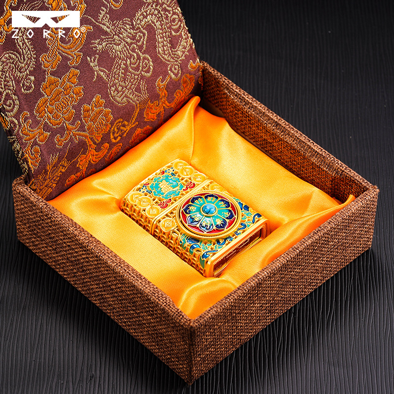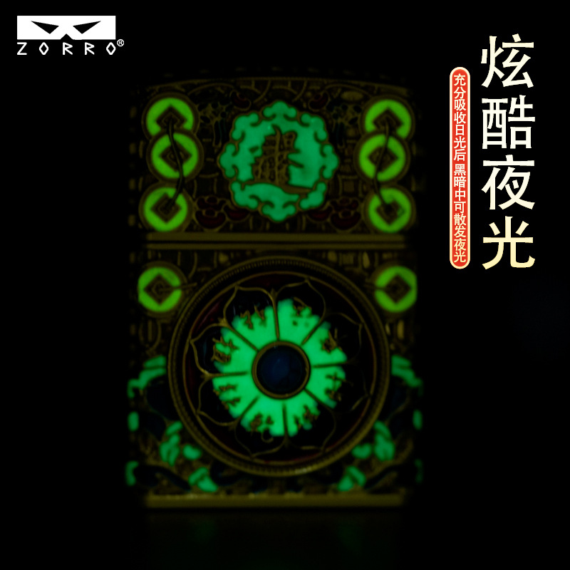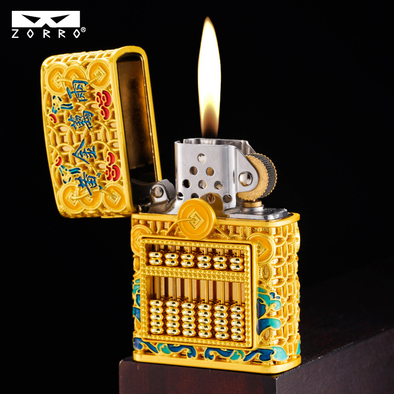 zorro佐罗正品砂轮煤油打火机铜壳二代套壳黄金万两算盘夜光盔甲