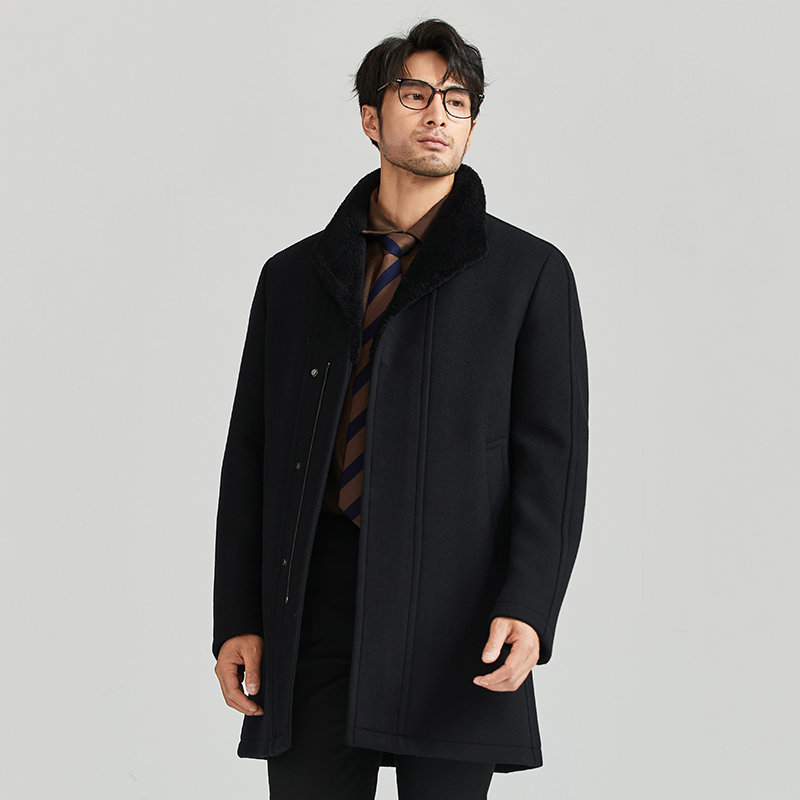秋季新款男士毛呢大衣休闲宽松立领中长款羊毛外套加厚冬季保暖男