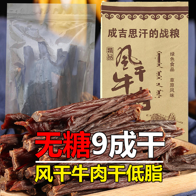 500 g超干牛肉干内蒙古风干袋装原味无糖健身风干肉成吉思汗