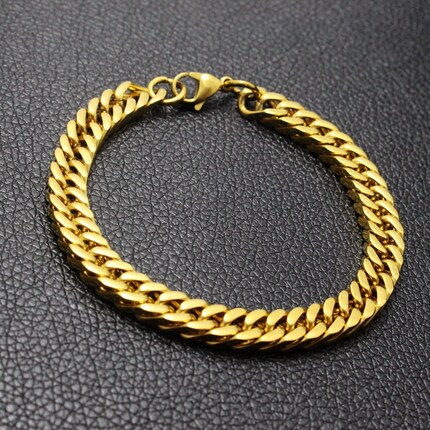 个性时尚金色男士钛钢古巴手链欧美潮男款街头嘻哈镀金首饰品手饰