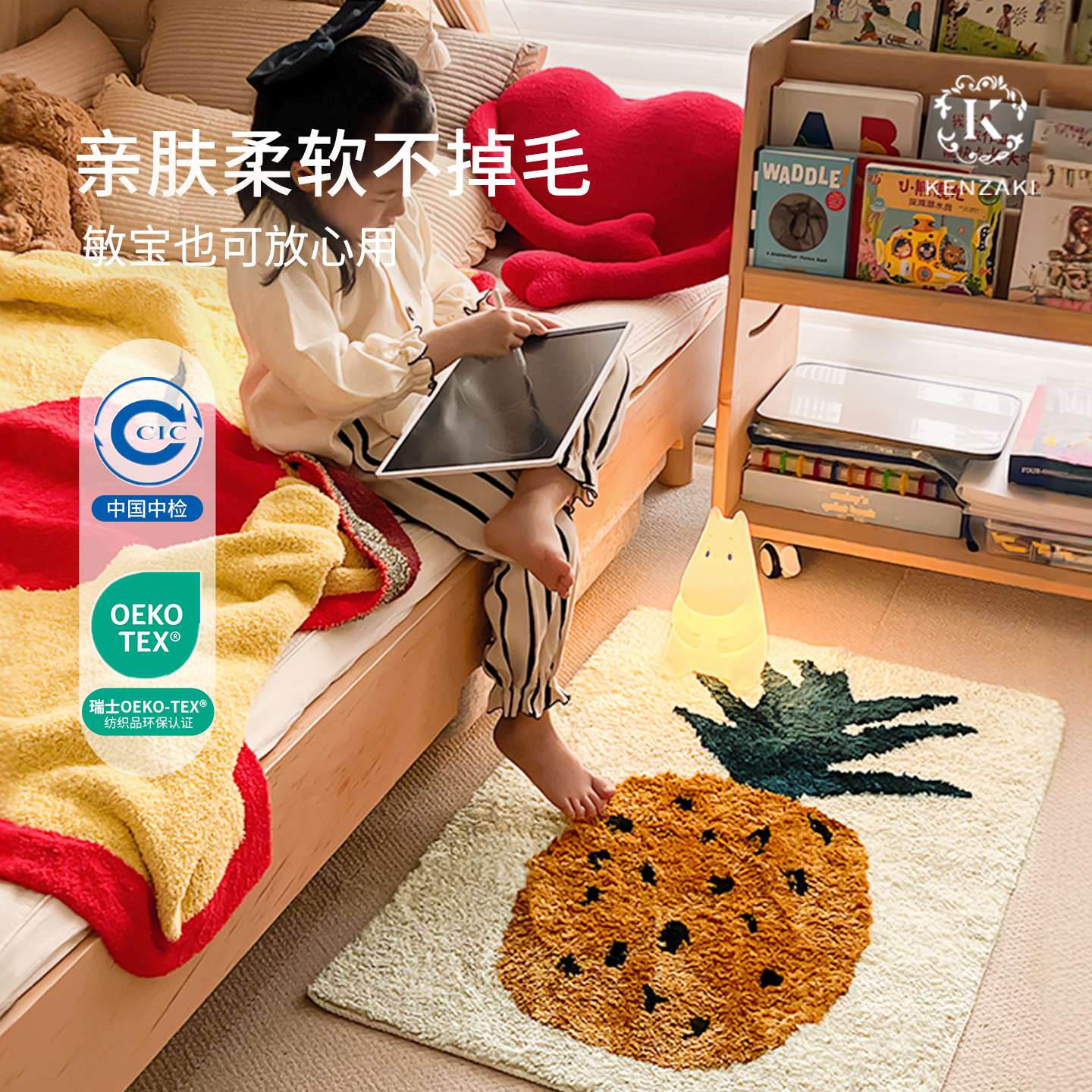 儿童房地毯卧室床边毯地垫ins风男孩女孩可爱水果菠萝毛绒可机洗