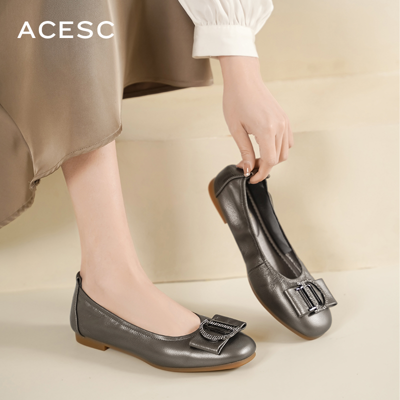 艾斯臣女鞋2025春季新款通勤优雅时尚休闲蛋卷真皮浅口女士单鞋