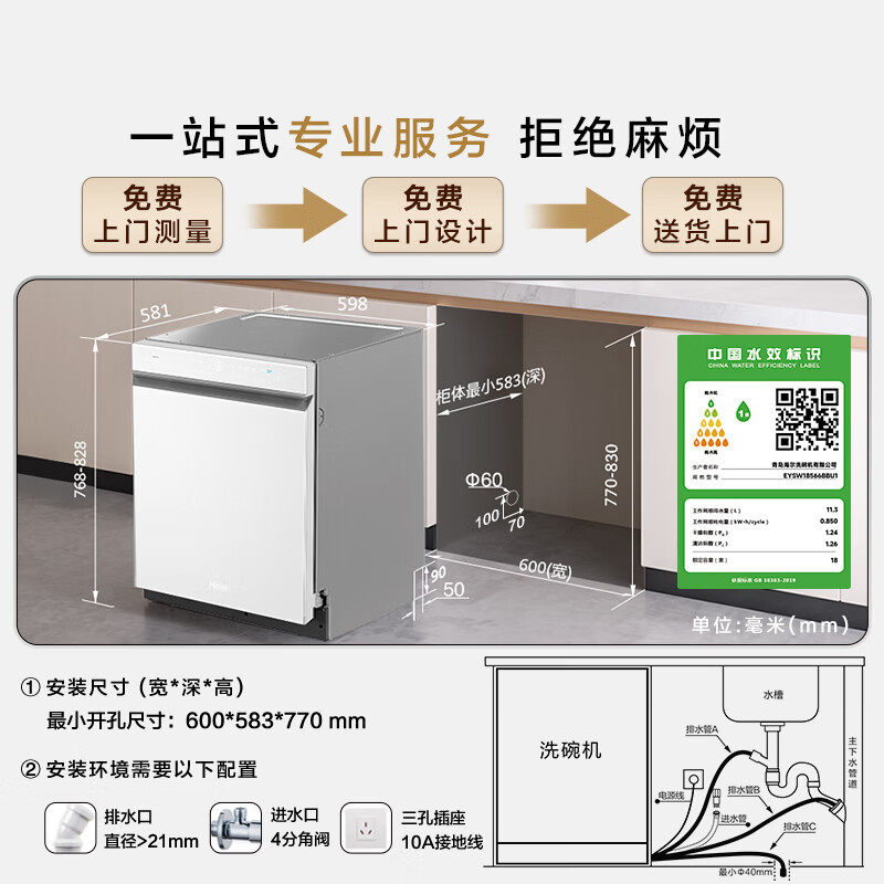 海尔麦浪洗碗机变频双面洗18套家用全自动嵌入式可消毒W5000Plus