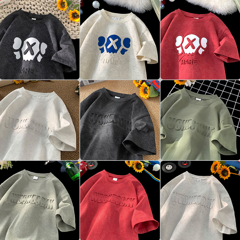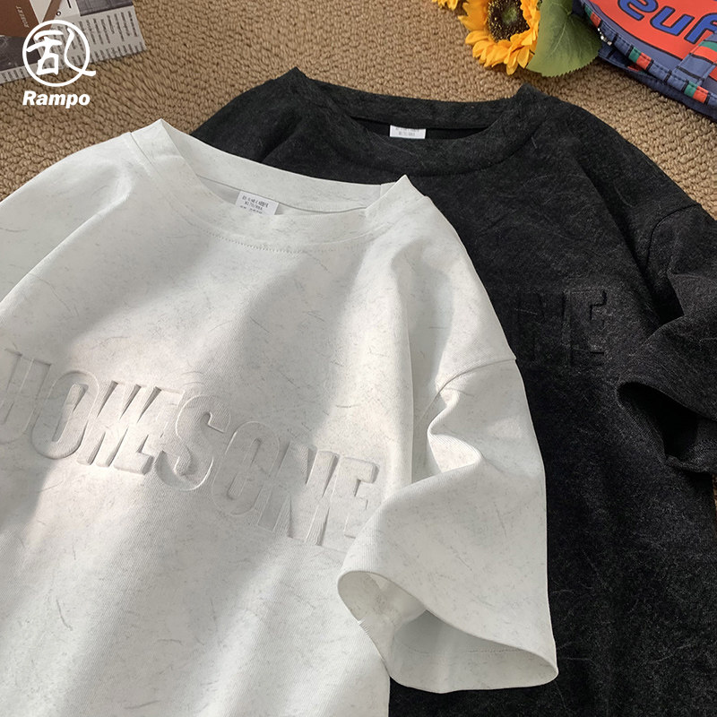 男士新款夏季钢印字母短袖体恤青少年学生个性潮流T恤ins潮牌夏装