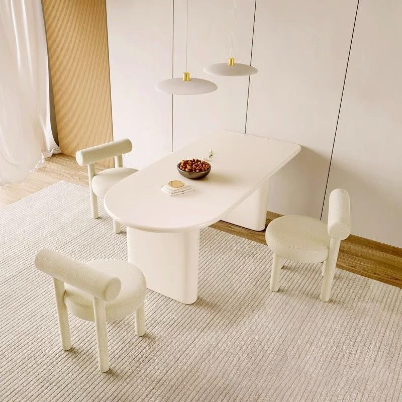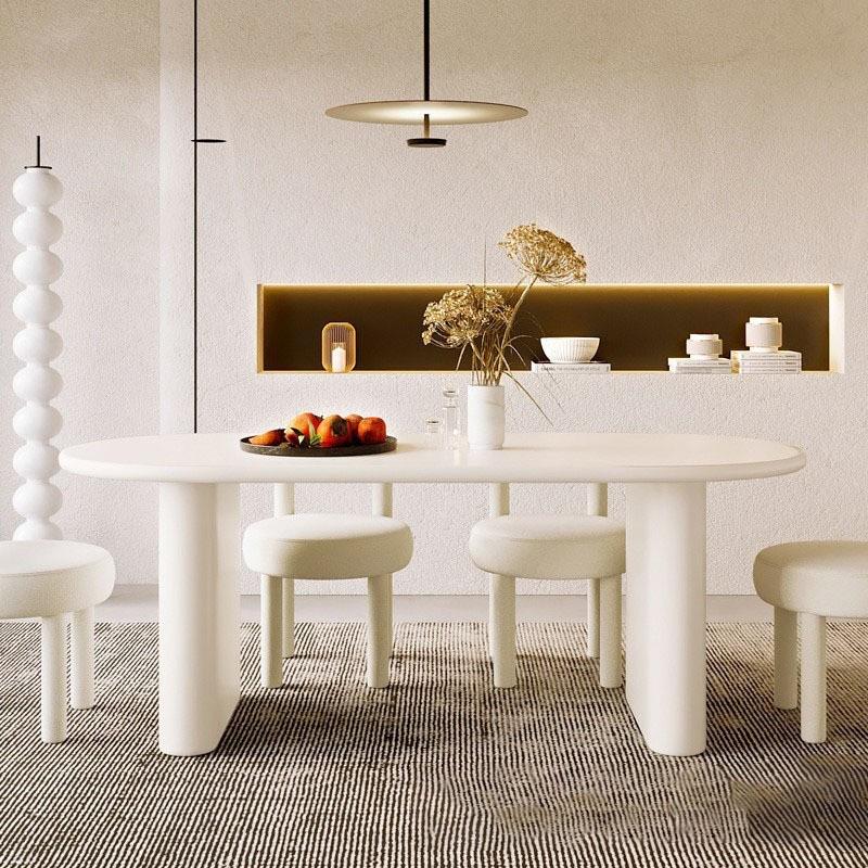 北欧奶油风实木餐桌小户型家用餐厅吃饭桌子现代简约椭圆形饭桌