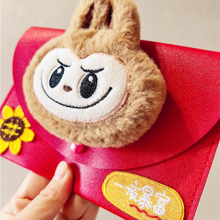 新年压岁钱毛绒收纳包皮质利是封带挂绳华人春节横款竖款万元红包