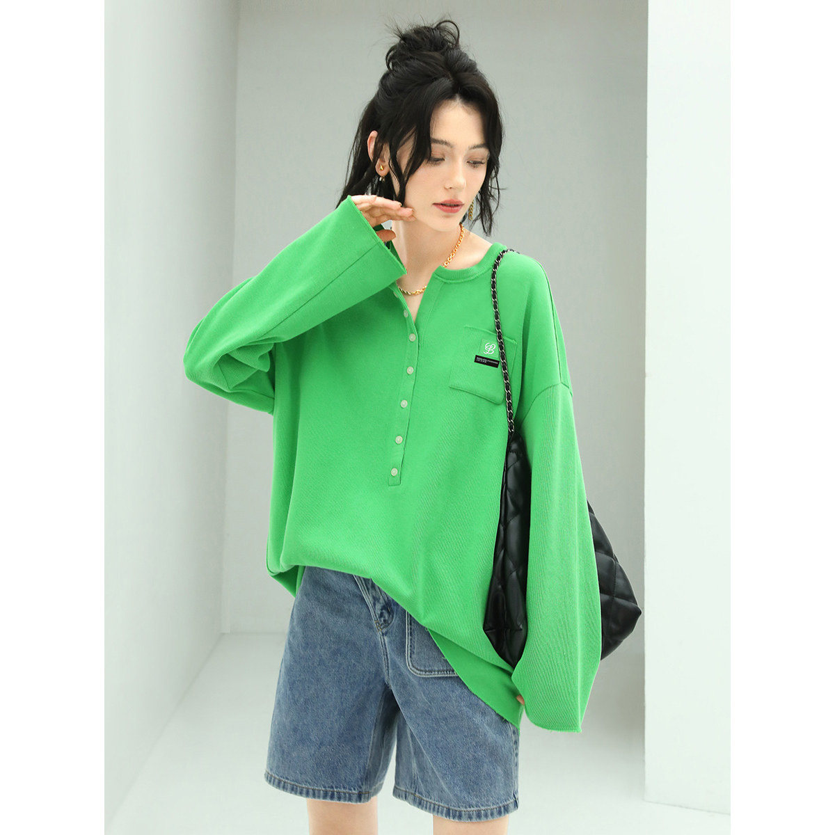 【3件5折】COCOBELLA糖果色亨利领针织长袖T恤女休闲POLO衫TS633