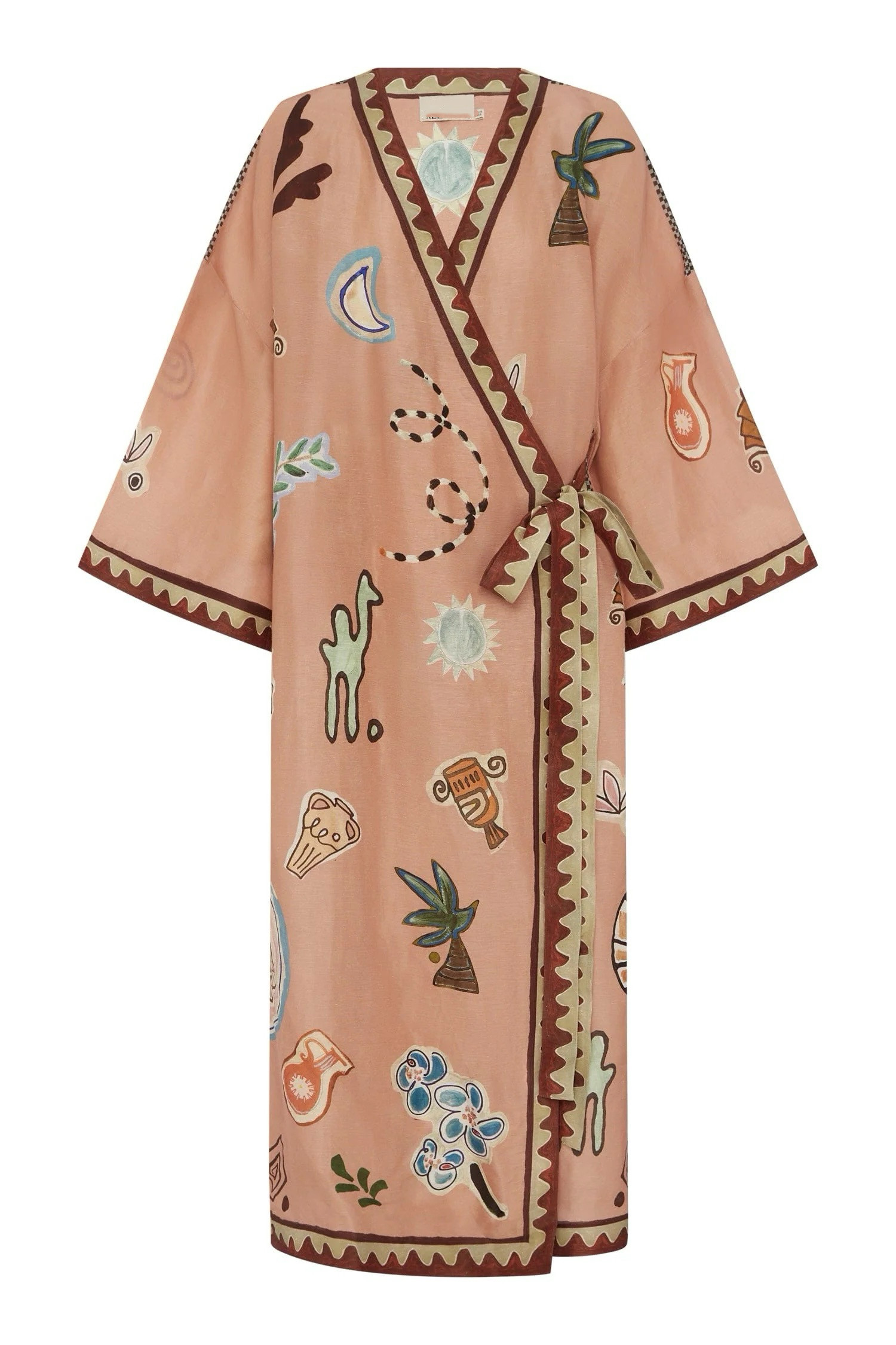 澳洲小众真丝丝麻复古印花长袖围裹式连衣裙2026新款度假休闲长裙
