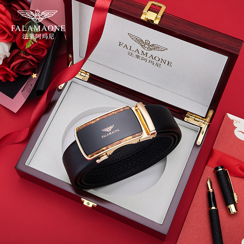 正品法莱阿玛尼皮带男士真皮自动扣新款商务牛皮腰带男奢侈品礼盒