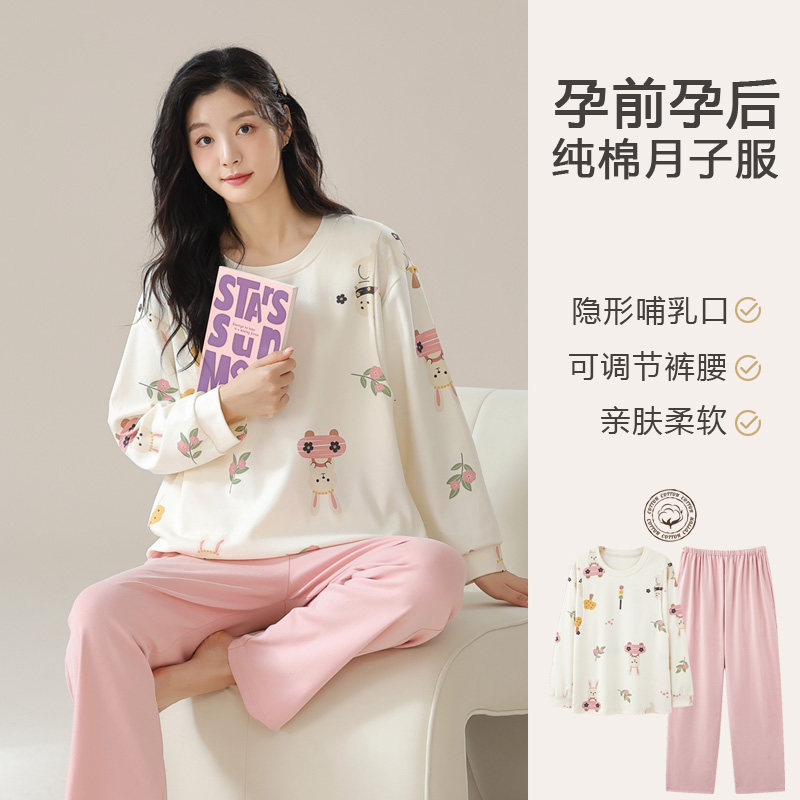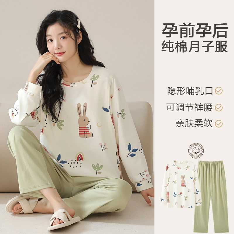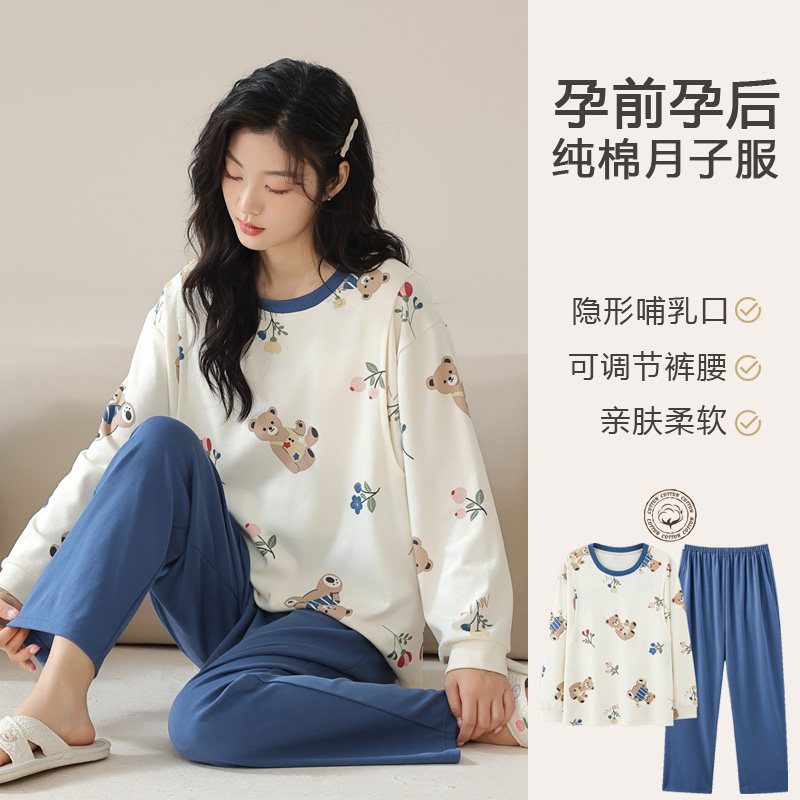 月子服睡衣女士春秋季纯棉长袖套头哺乳孕妇怀孕期家居服产后喂奶