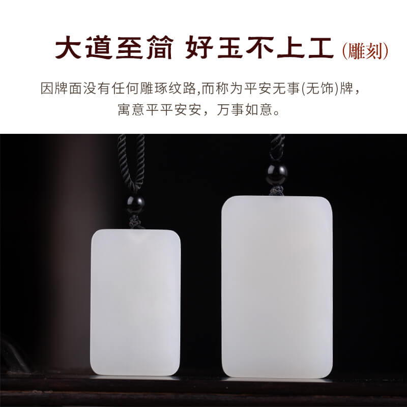 九帛和田玉羊脂玉平安无事牌男女吊坠白玉石项链挂坠玉牌颈饰鉴定