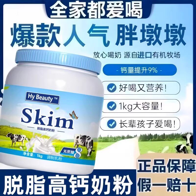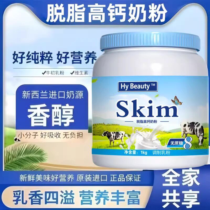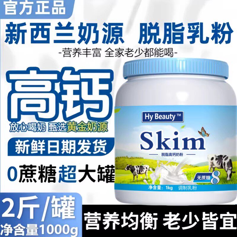 新西兰进口奶源中老年脱脂奶粉无糖0脂全脂牛奶粉官方旗舰店正品