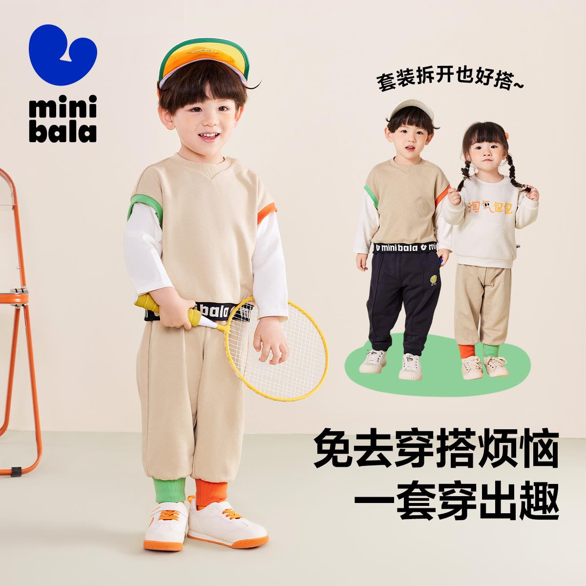迷你巴拉巴拉儿童套装男童女童秋装中小童宝宝运动套头卫衣两件套