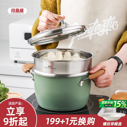 川岛屋蒸锅家用2025新款不锈钢电磁炉燃气灶专用汤锅带蒸笼煮炖锅