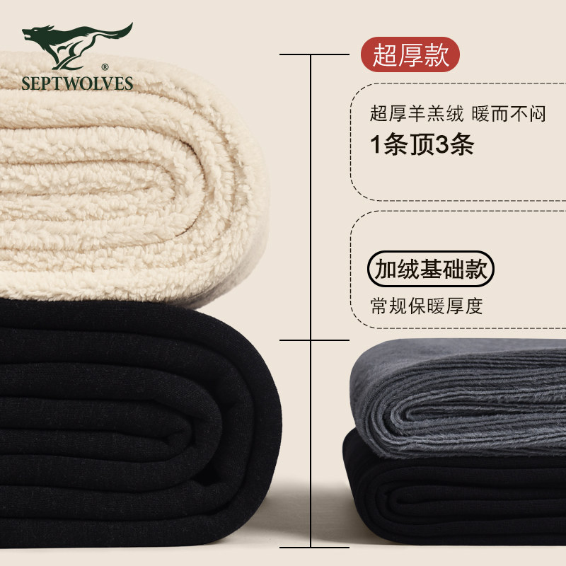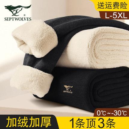 七匹狼男士保暖裤加绒加厚冬季特厚防寒大码秋裤男款羊羔绒打底裤