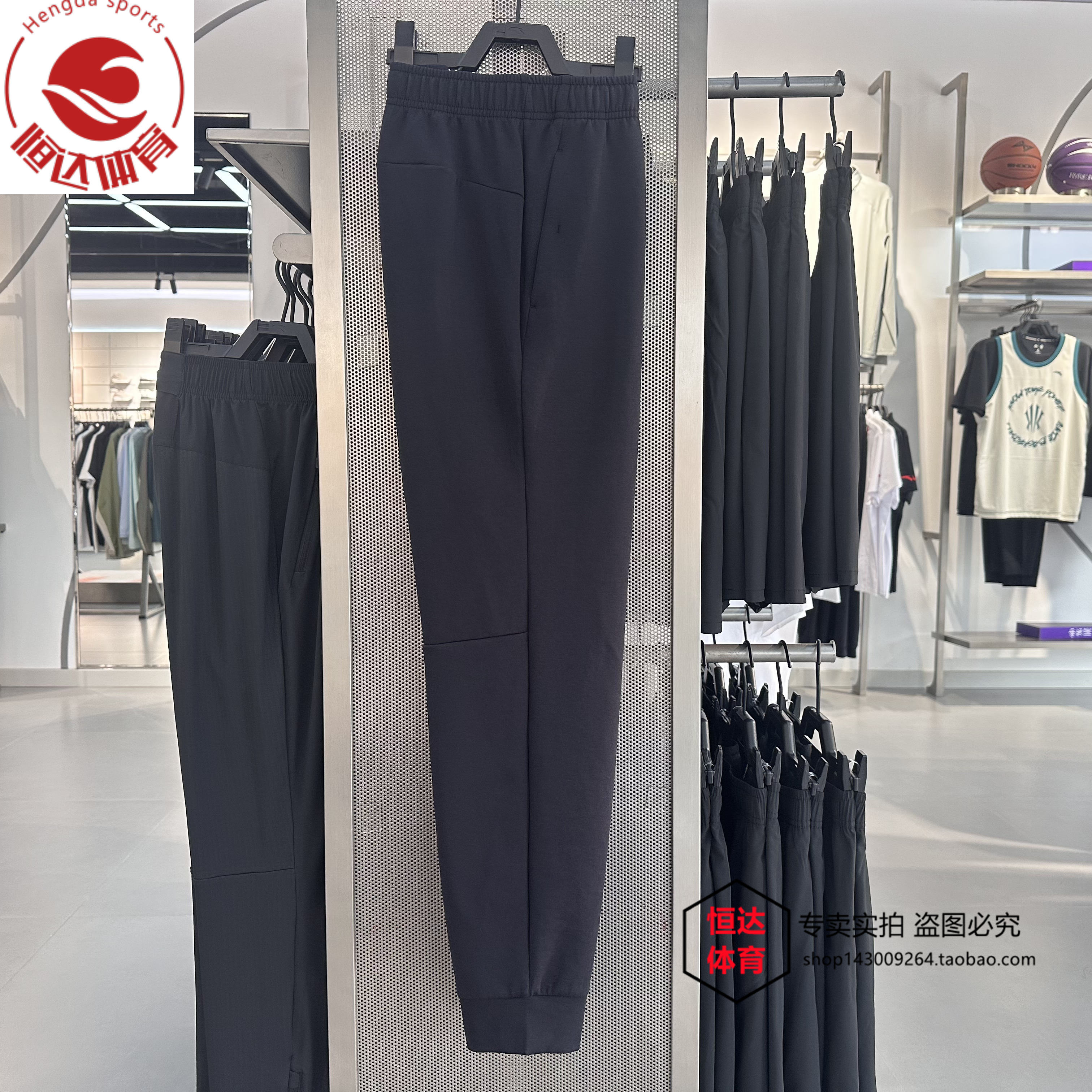 安踏针织运动长裤男士秋季跑步训练束脚卫裤黑色运动裤152537323
