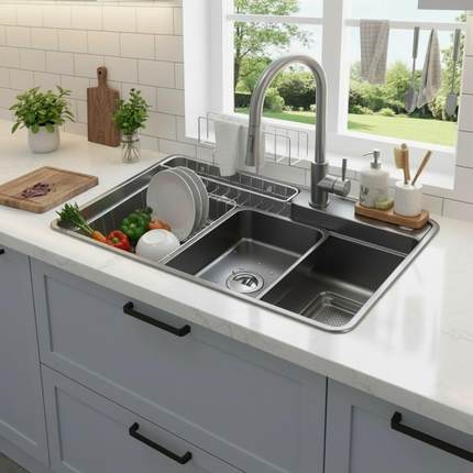 欧琳水槽304不锈钢水槽厨房洗菜盆手工洗菜盆日式大单槽6