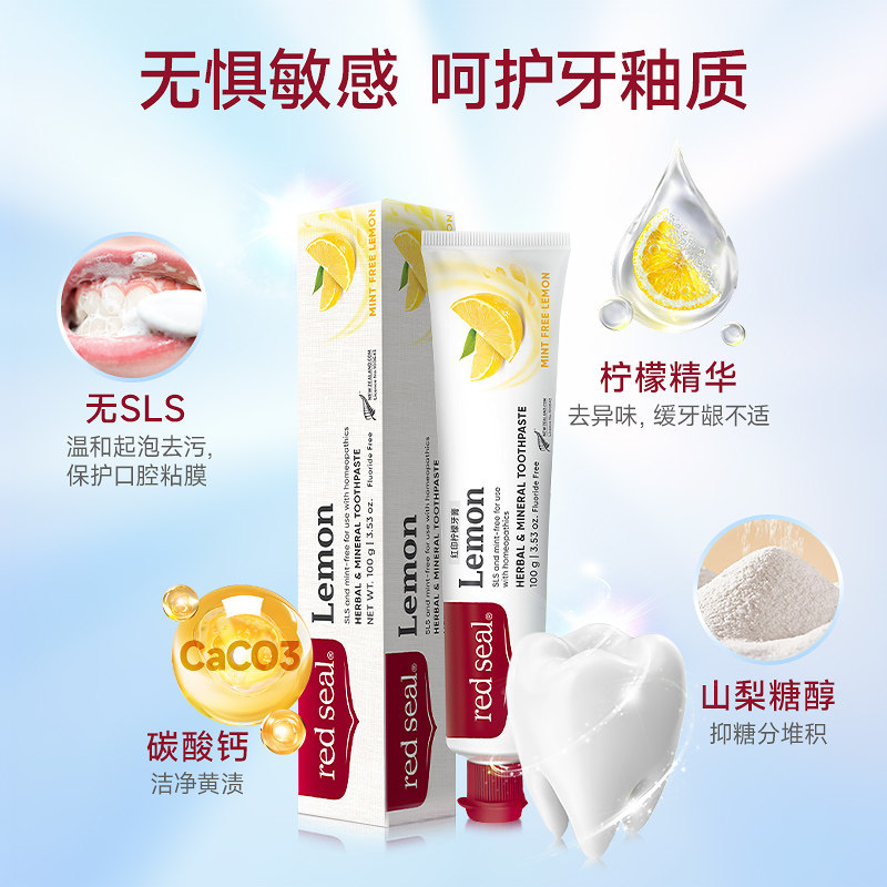 redseal红印新西兰进口柠檬牙膏无氟温和抗敏感清新口气美白正品