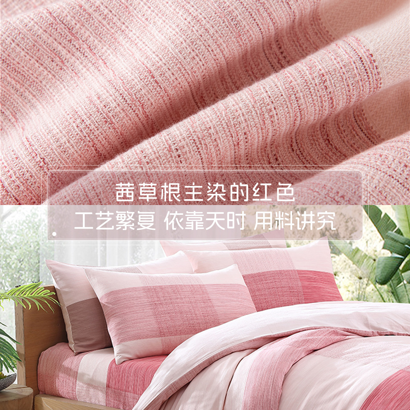 鲁锦植物染色全棉老粗布枕套一件