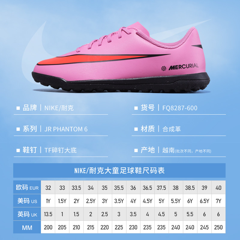 Nike儿童足球鞋VAPOR刺客16基础款TF碎钉小学生男女童FQ8287-600