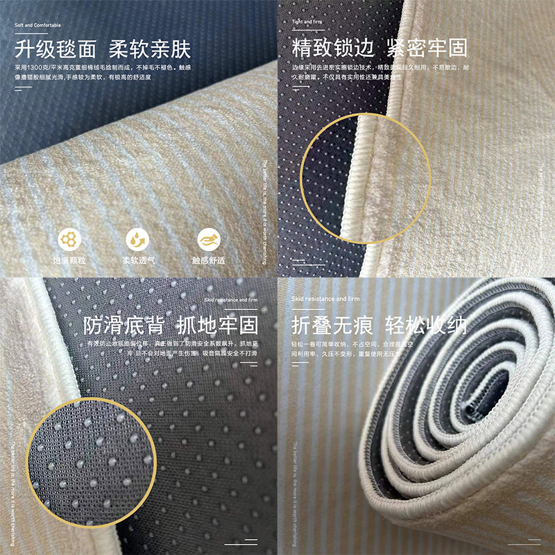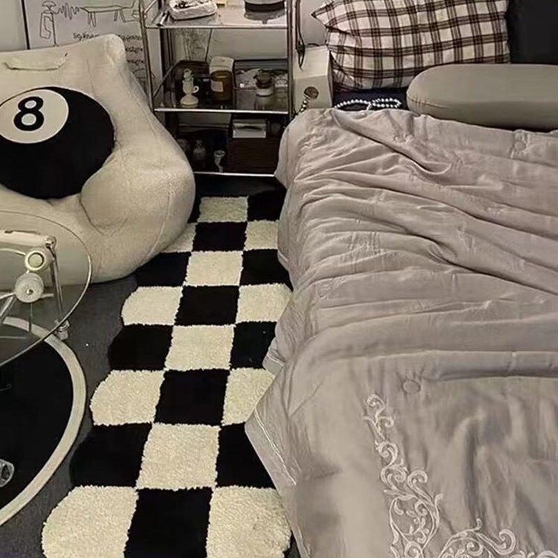 奶油风地毯黑白风高级感卧室房间床边毯长条沙发茶几毯毛绒加厚垫