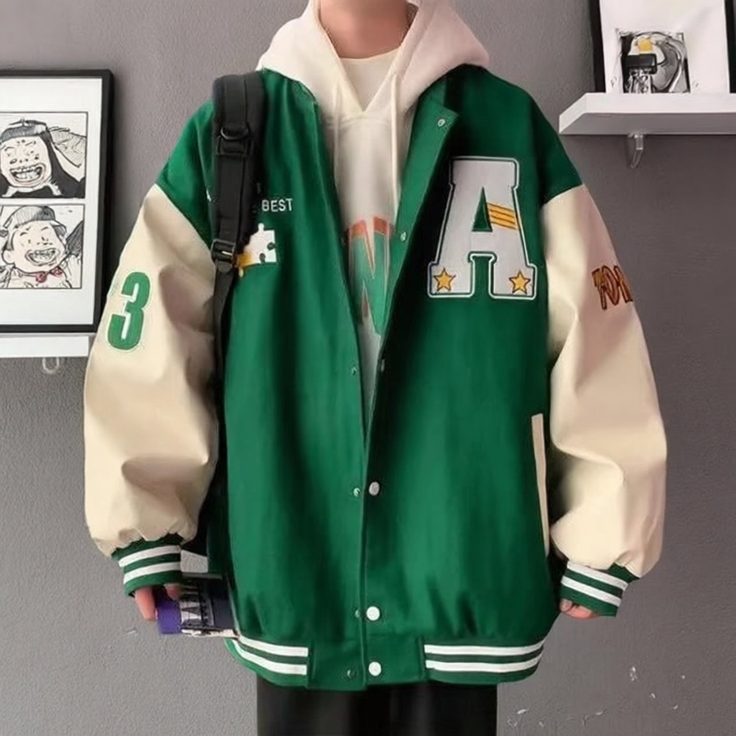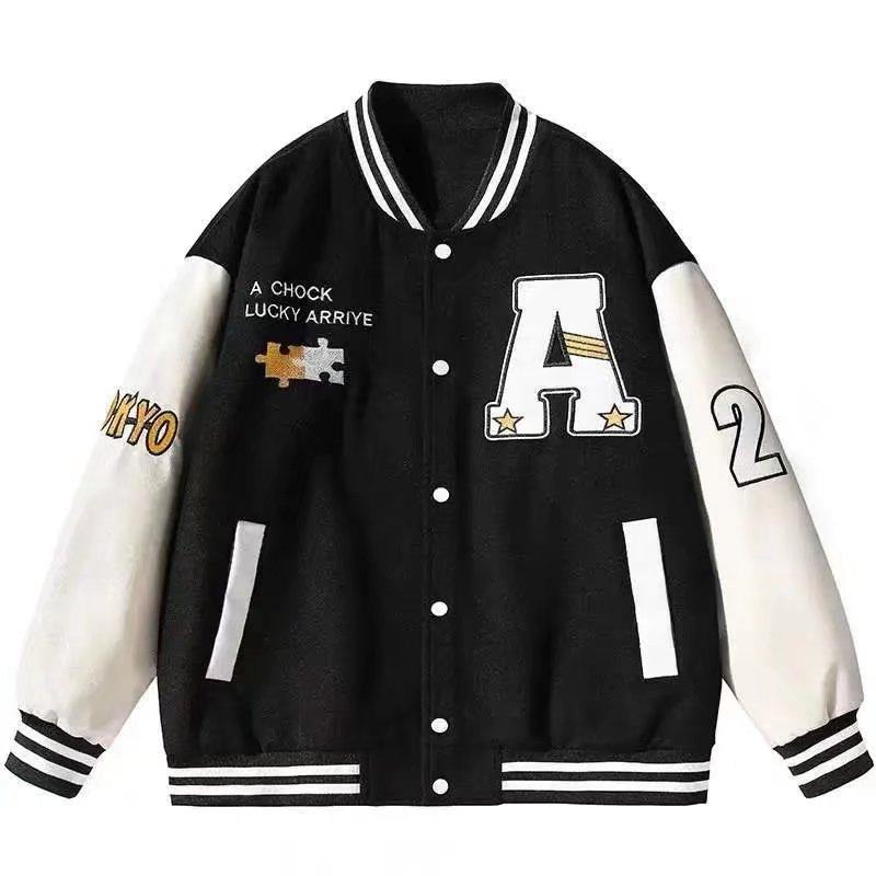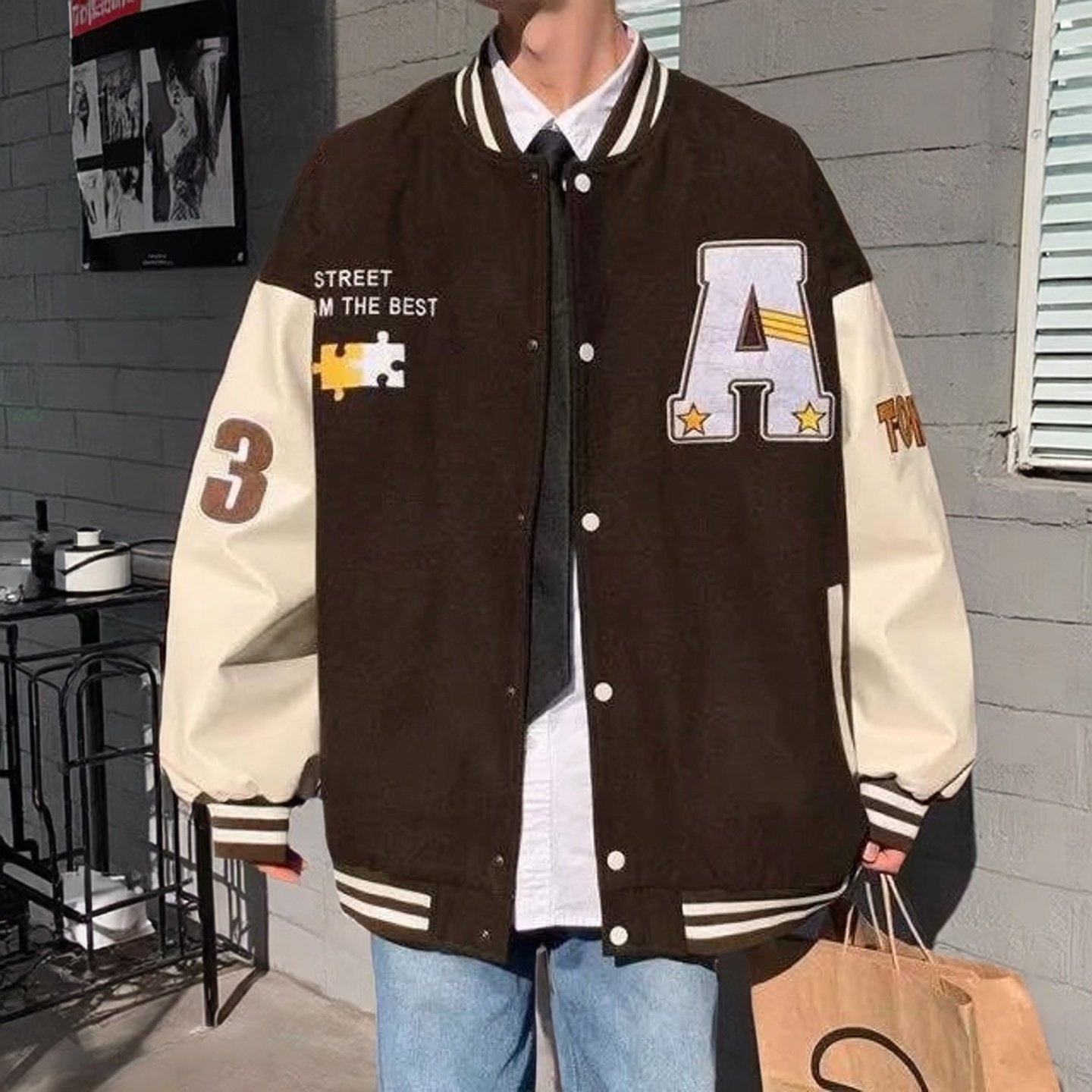 2026春季新款男士加绒棒球服休闲宽松字母刺绣上衣学生情侣装外套