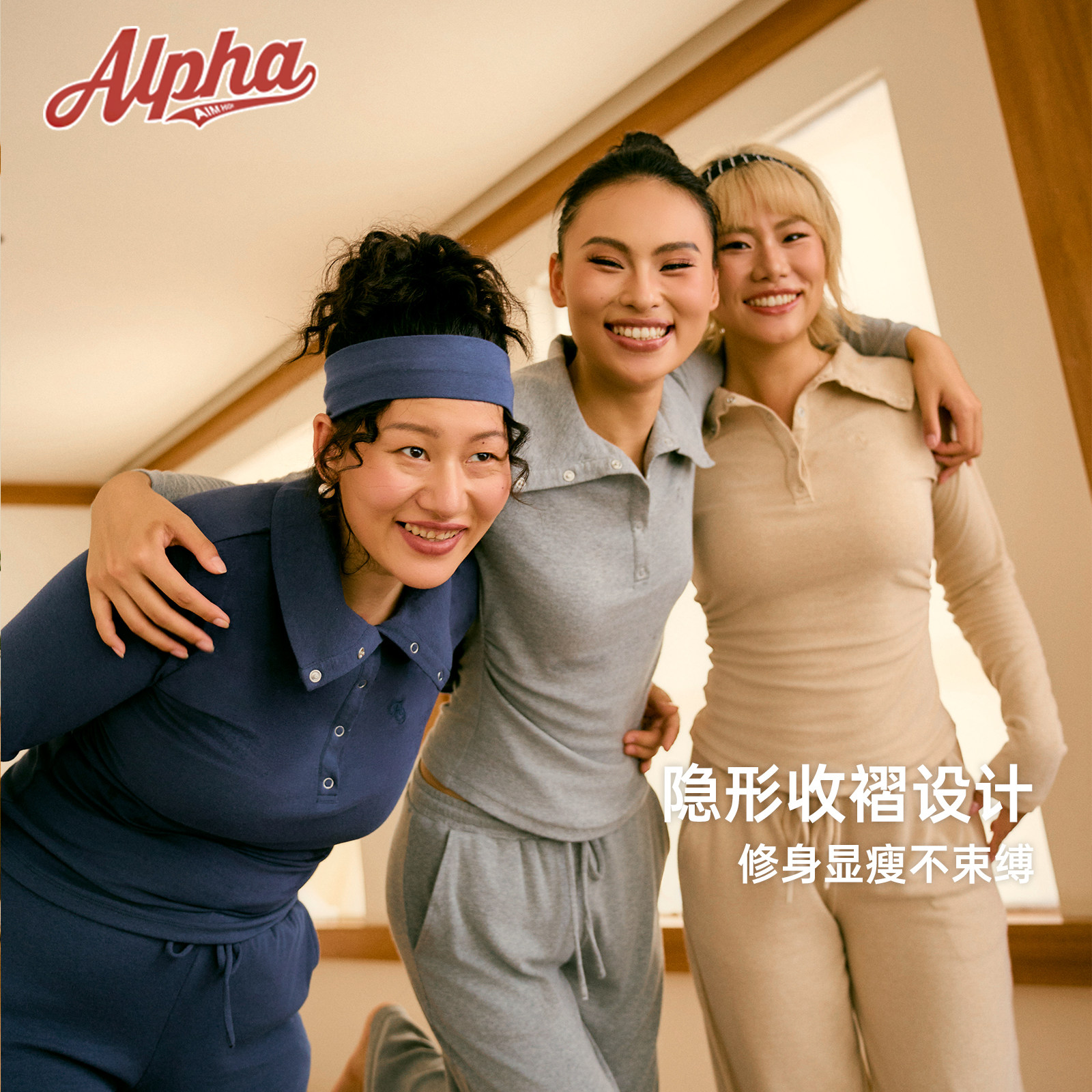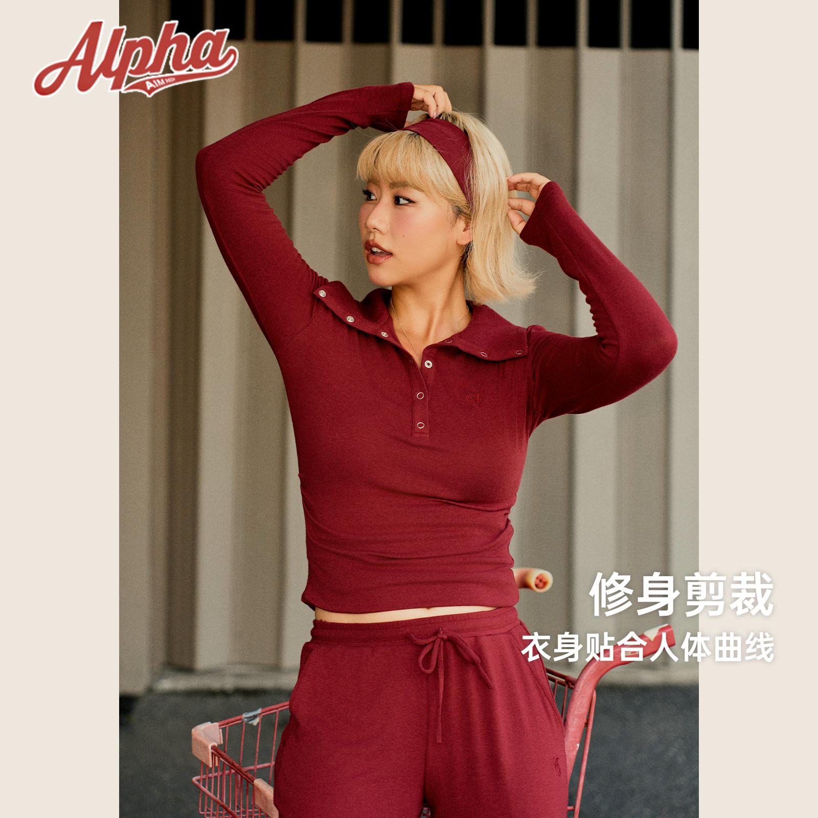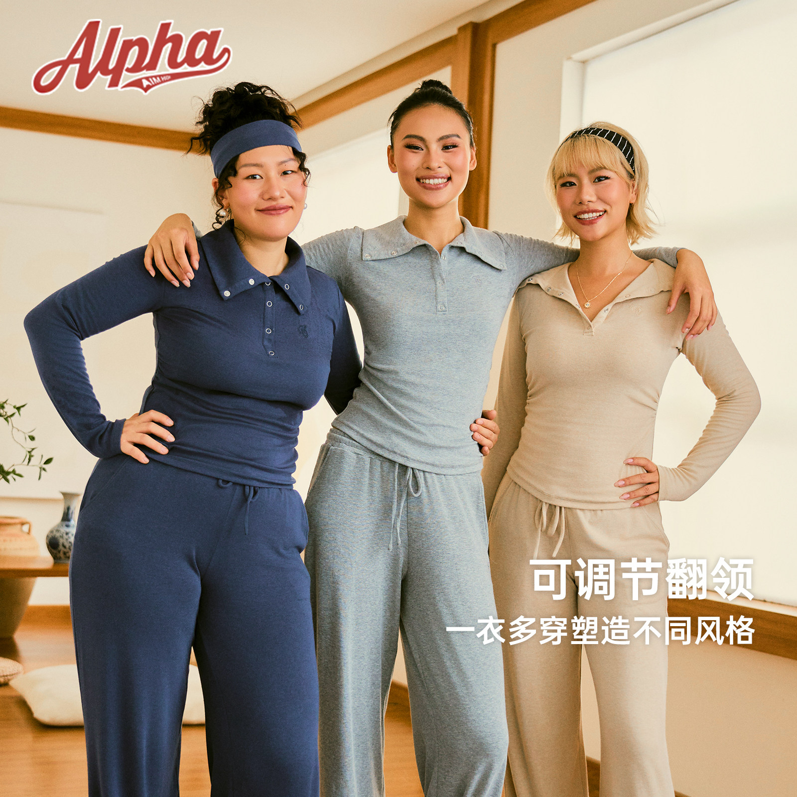 AlphaGym仿羊绒保暖套装女秋冬翻领亨利长袖上衣阔腿裤休闲运动