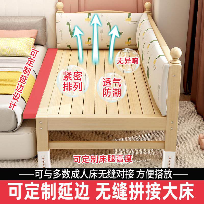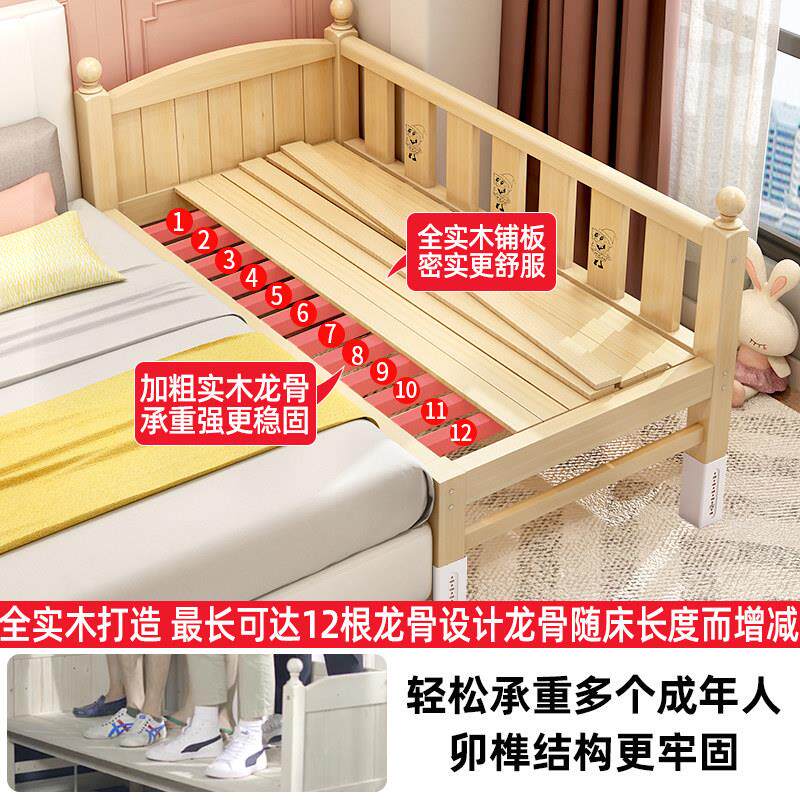 儿童床实木拼接床可调节婴儿床带护栏单人小床加宽大床宝宝床边床