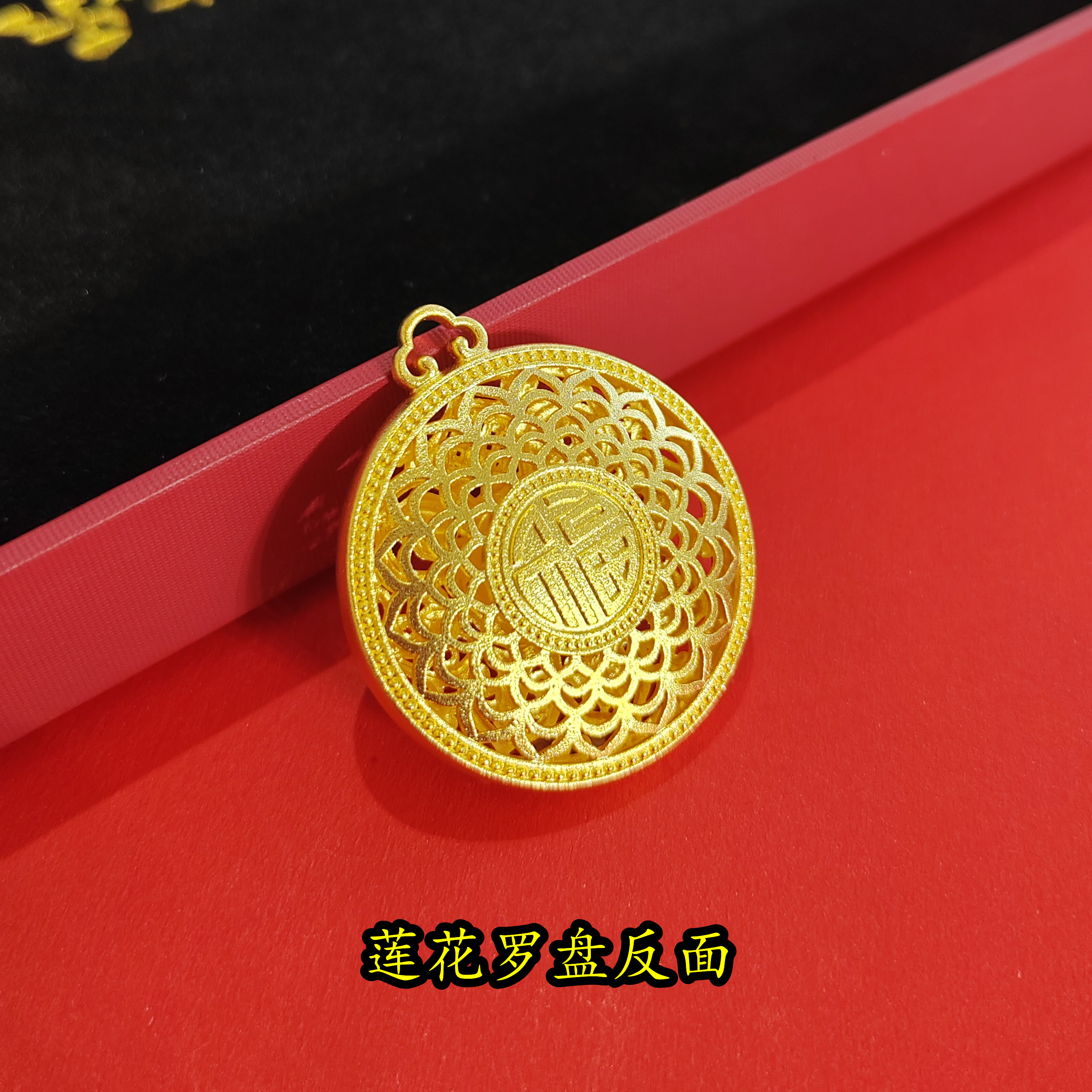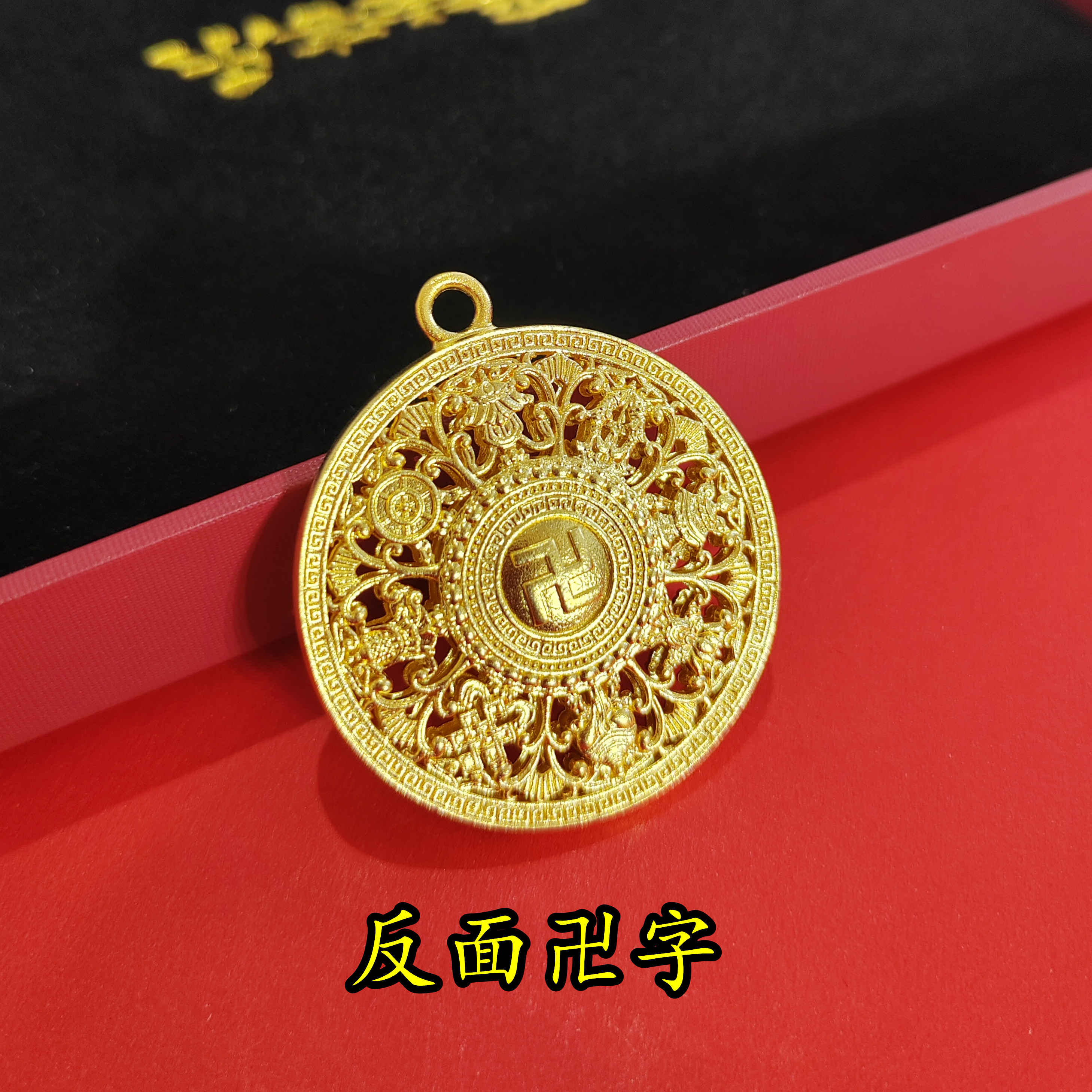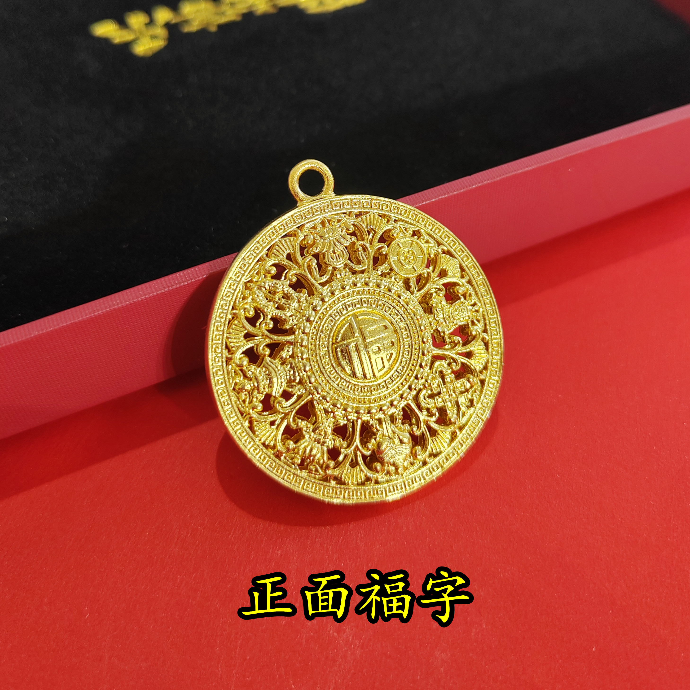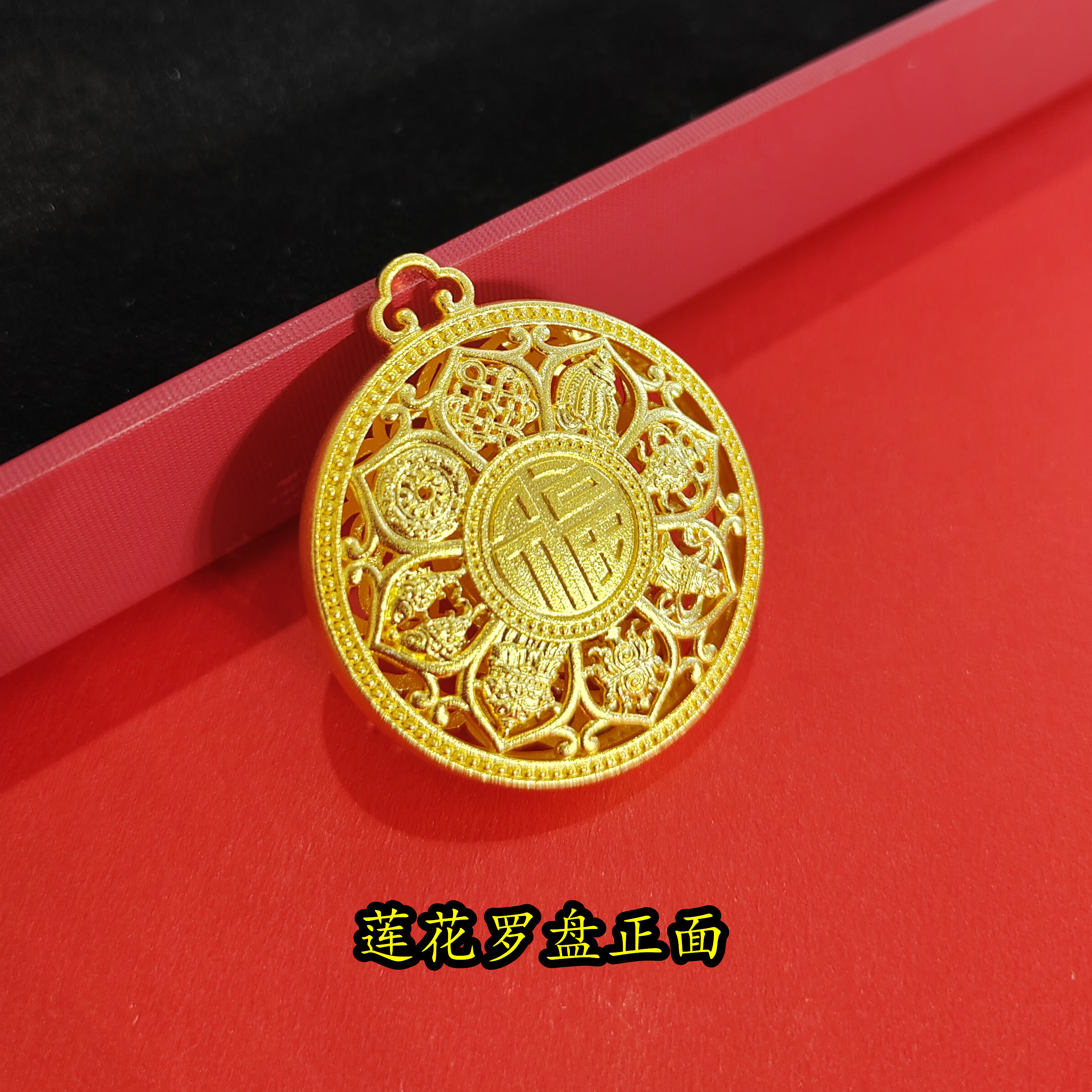 999足金包银项链黄金八宝罗盘吊坠镂空福字圆盘挂坠毛衣链送女友