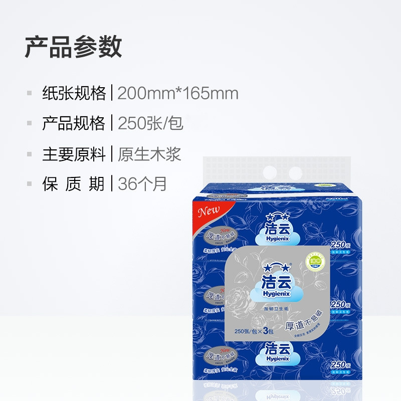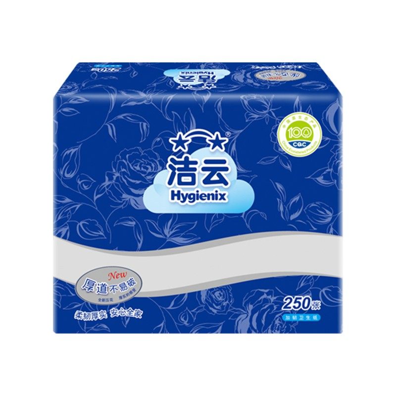 洁云加韧卫生纸2层125抽(250张)6包厕纸卫生间擦手纸平板纸提装