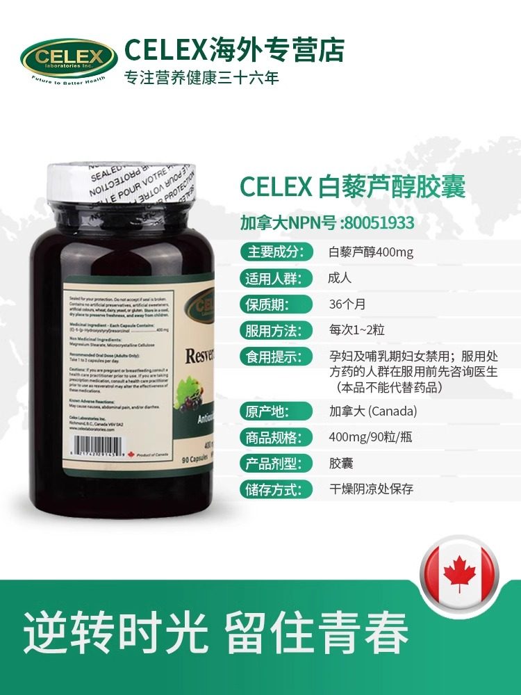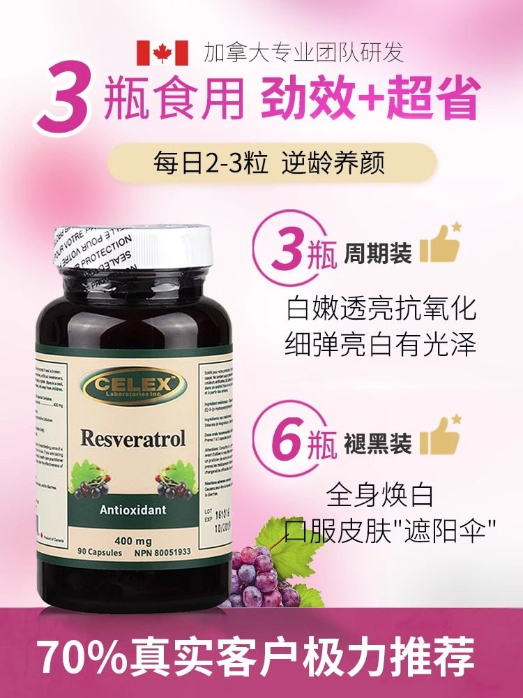 celex反式白藜芦醇精华葡萄籽胶囊丸皙颜亮白美肌原装正品400mg