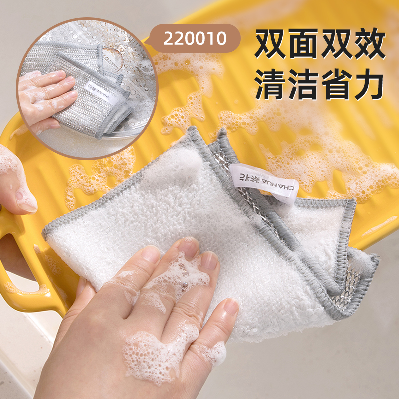 茶花钢丝洗碗布厨房专用刷碗锅金属丝沾油加厚银丝球抹布清洁布不