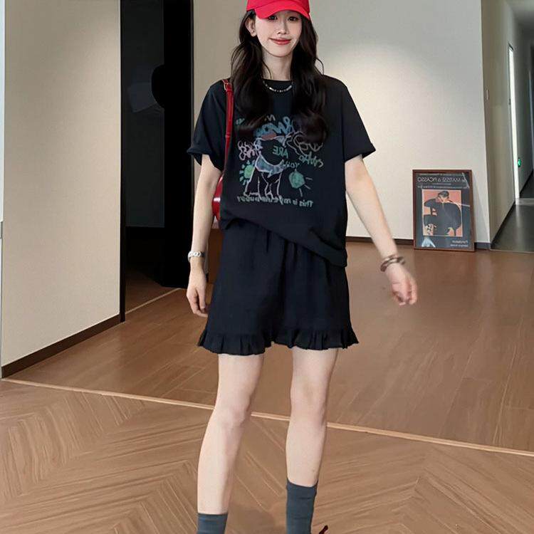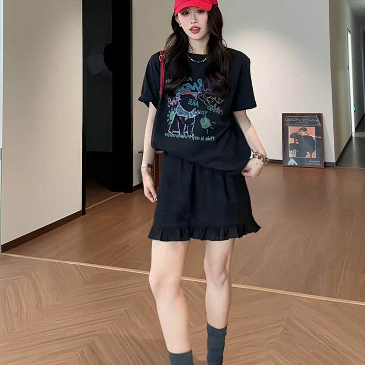 女感流行新款纯棉短袖夏季上衣印花百搭时尚涂鸦高级2025美式T恤
