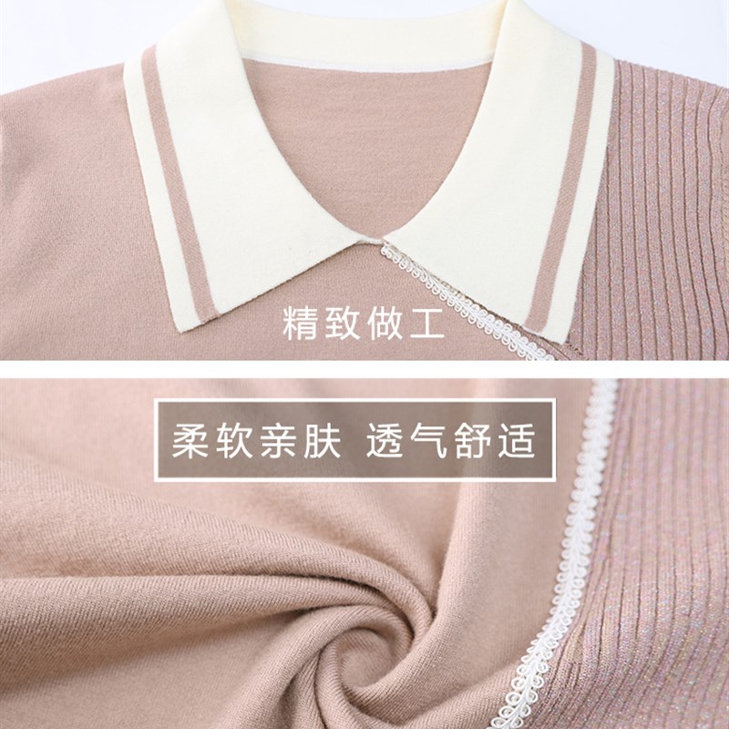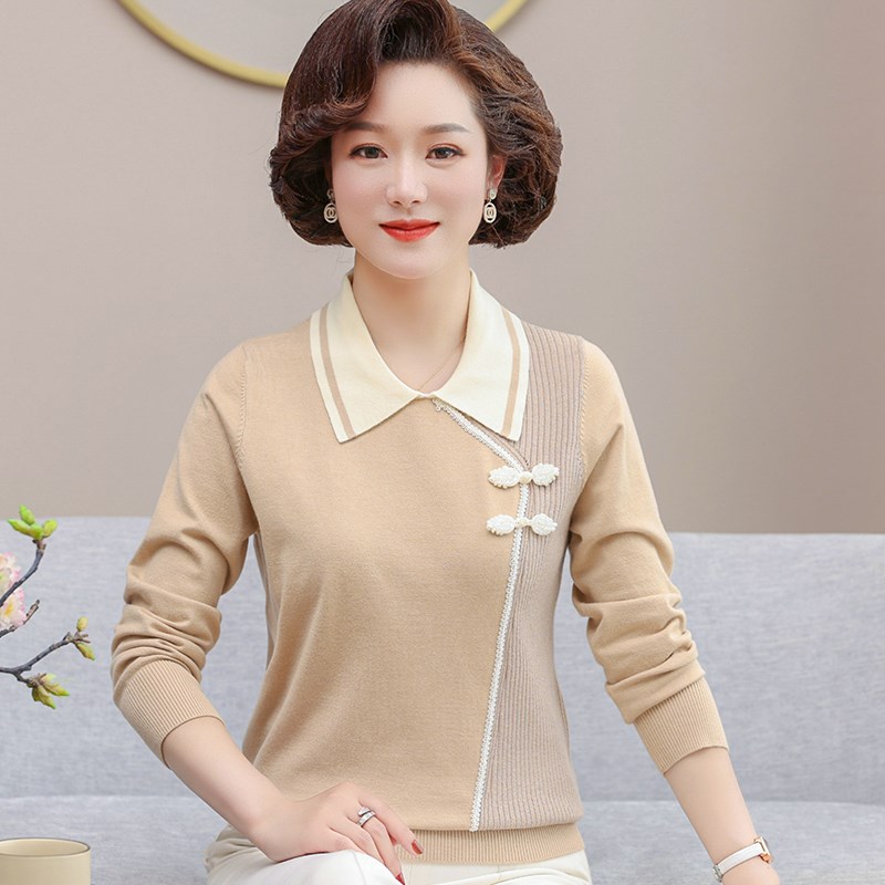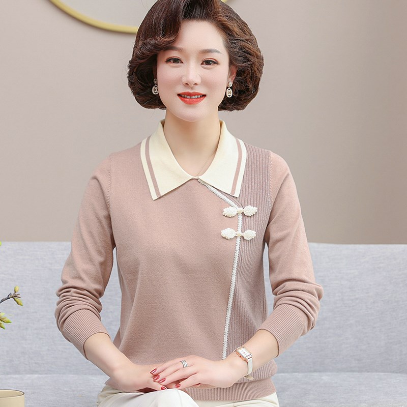妈妈款春装长袖T恤中年妇女翻领打底衫50-60岁中老年人春秋上衣服